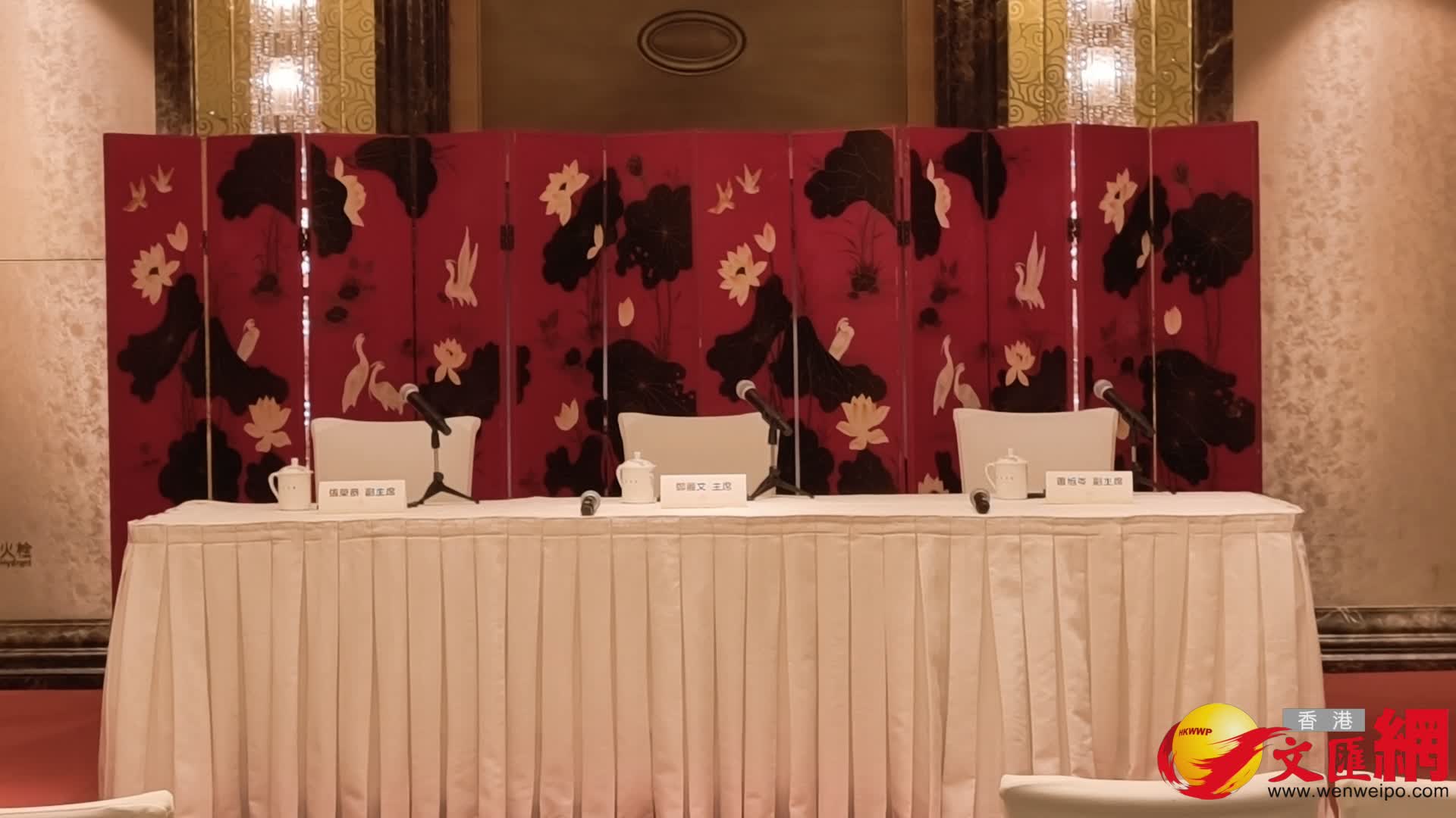 (香港文匯網記者 朱燁 北京報道)10日,習鄭會之後,中國國民黨在鄭麗文一行下榻的中國大飯店召開記者會。根據現場擺放桌簽來,鄭麗文主席居中,兩位副主席分坐左右。