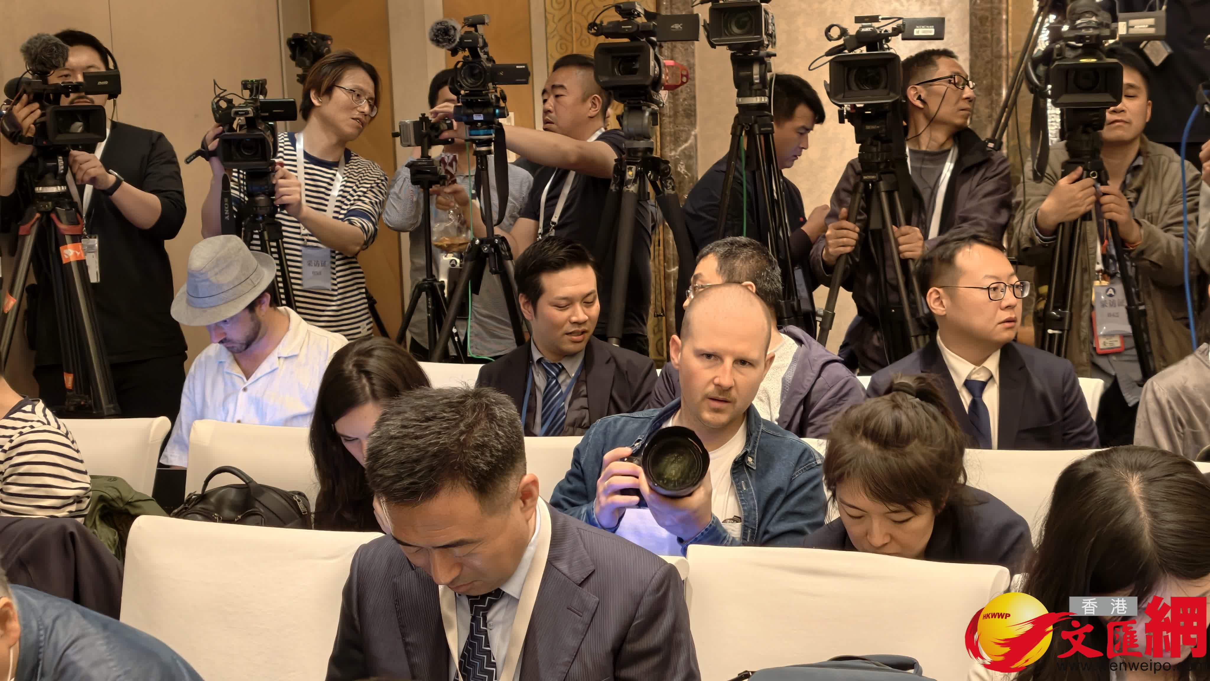 發布會預計下午兩點半開始,從一點鐘開始,已有媒體不斷前來詢問能否進場,約一點半時,發布會入口安檢處已經大排長龍,記者看到裏面不乏有外國媒體的身影,其中來自日本、美國的媒體也在隊伍前列,可見中外媒體對鄭麗文訪陸的熱度。