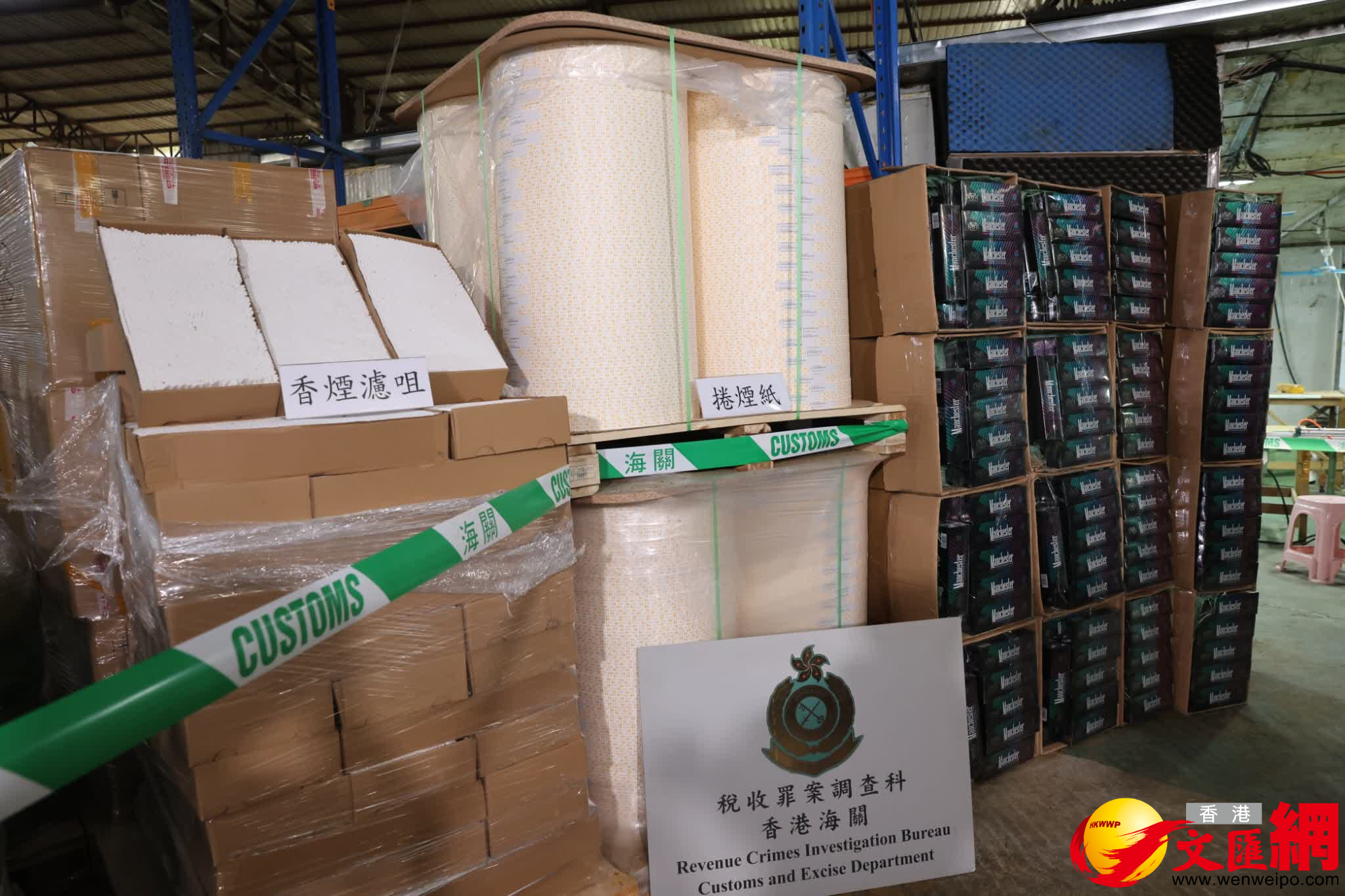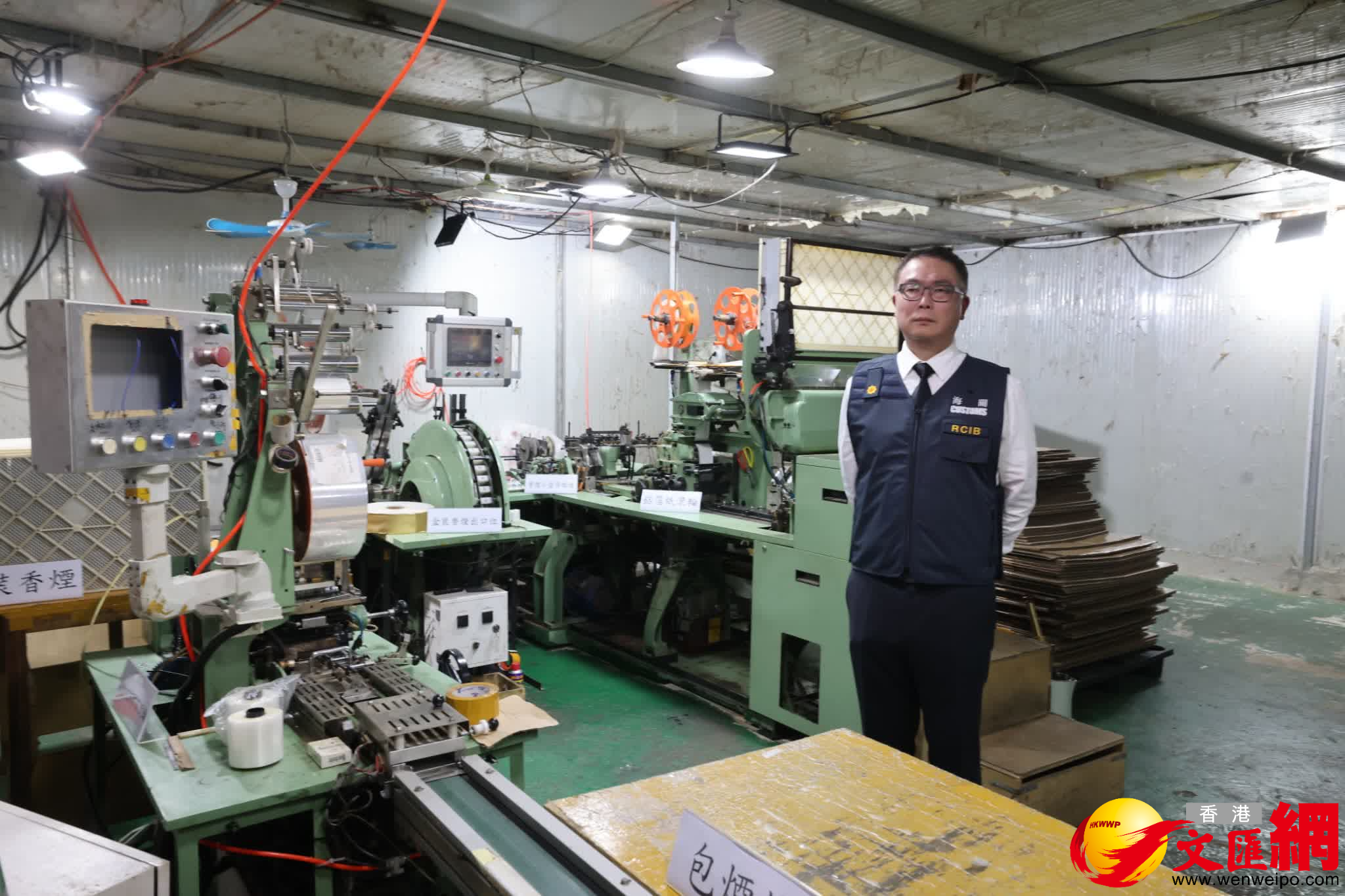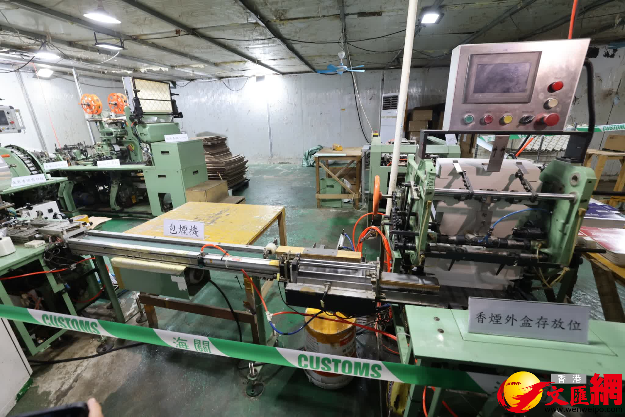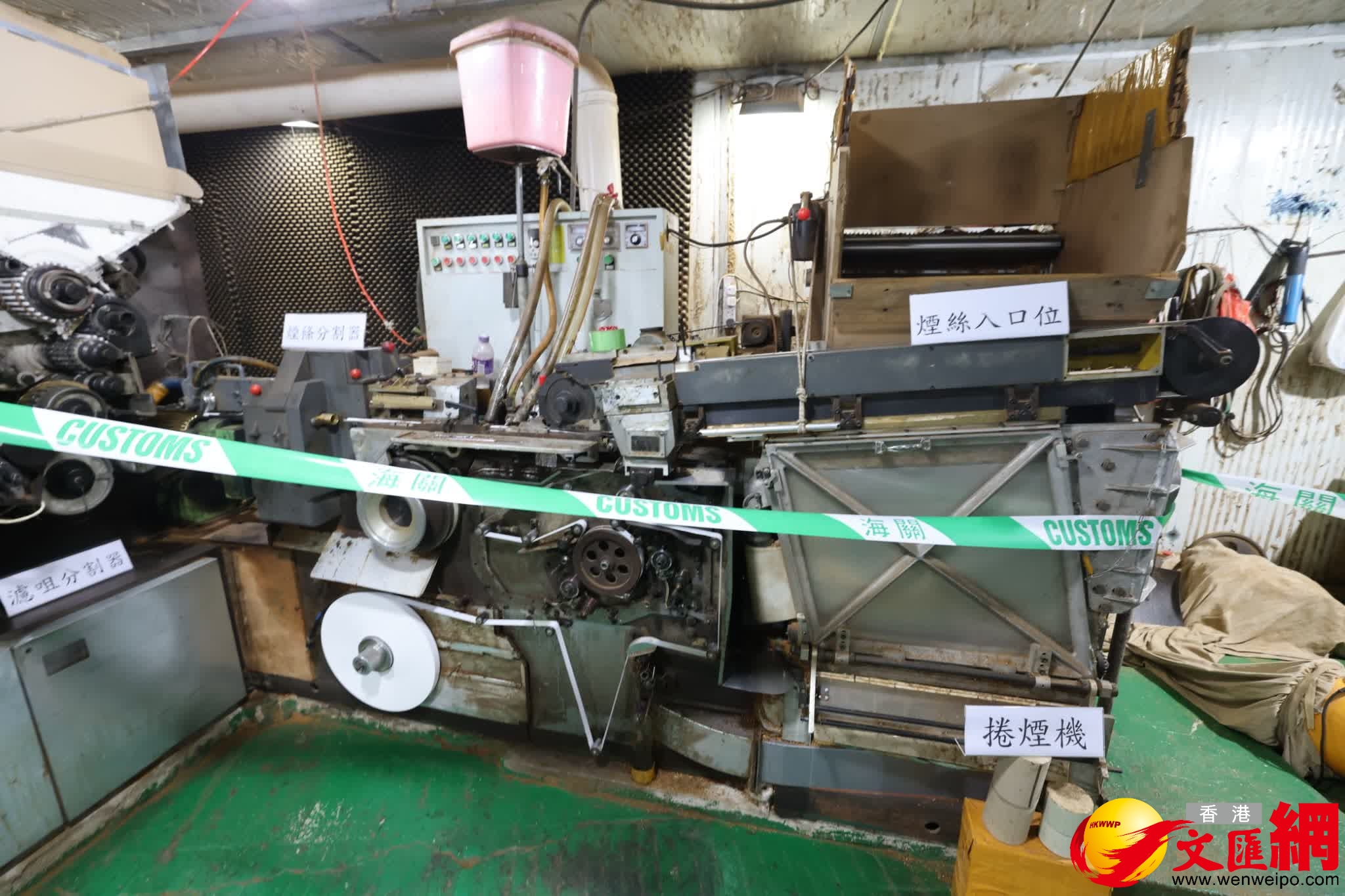 海關表示,涉案鐵皮倉中央設有密室,內設完整的地下製煙生產線。生產線分為兩部分,第一部分是捲煙機器,將煙絲用紙捲起並黏合濾嘴;第二部分是包裝機器,將散裝私煙包裝成包裝或條裝。同時,該密室內外均裝有工業用濾咀隔音材料,用以阻絕機器運作噪音,防止執法人員及市民察覺。