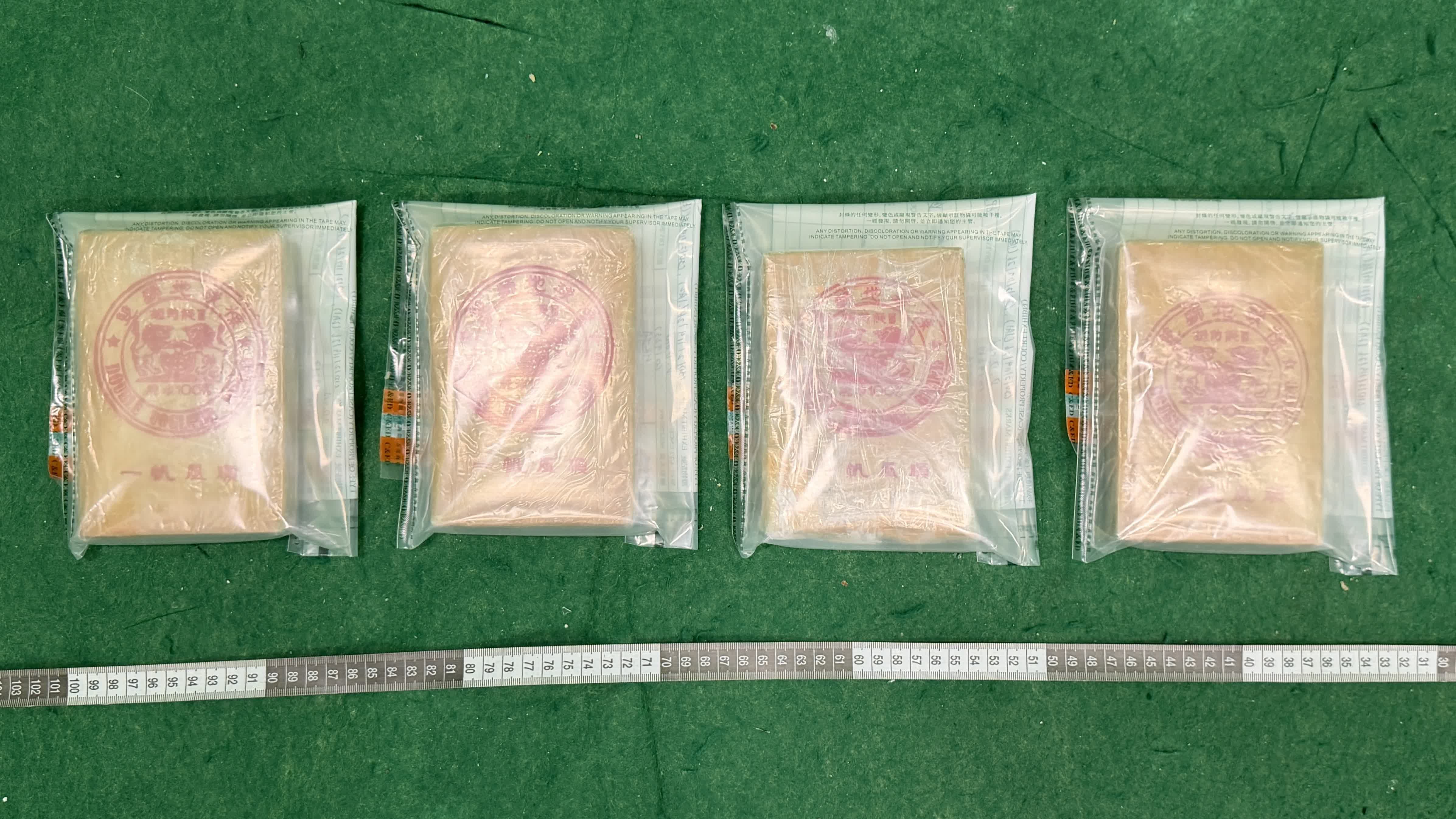 一名38歲男旅客昨日從馬來西亞吉隆坡飛抵本港。海關人員清關時,在他的手提行李內檢獲該批懷疑海洛英,遂把他拘捕。