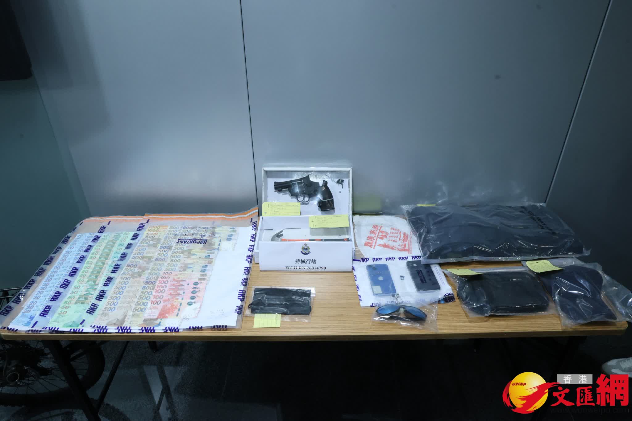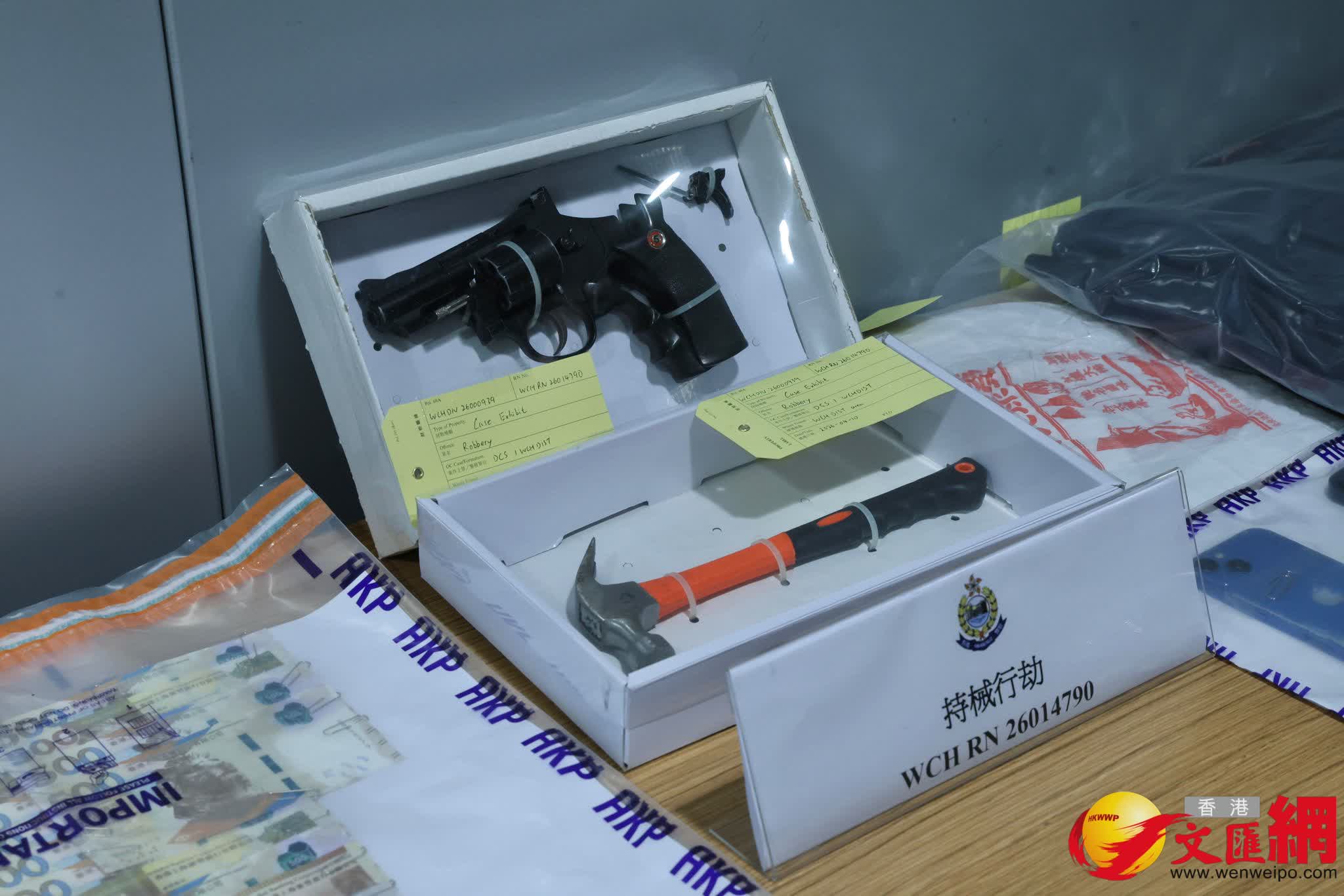據悉,疑犯當時已脫下黑色外套,只穿一件白色短袖衫,但仍被警員迅速認出,並在其身上起回所有贓款,以及檢獲一支相信與案有關的仿製氣手槍和一把鐵錘,遂以涉嫌「行劫」罪名將其拘捕押往柴灣警署接受進一步調查。案件現由灣仔警區重案組第一隊跟進。