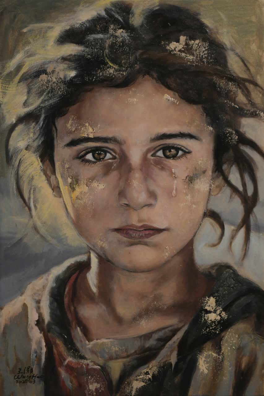 「文化牧人」之初心,融於筆墨,見於創作,無一處不藏真意,無一筆不寄深情。王灝之藝,非孤芳自賞的筆墨遊戲,非故作高深的形式雕琢,而是扎根文化、觀照世界、直抒胸臆的真情表達,守着「為天地立心,為生民立命」的文人初心。其書法,融古鑠今,漸成一格:草書筆勢連綿,如江河奔涌,一氣呵成;行書溫潤雋秀,如春風拂面,意蘊悠長;楷書端方沉厚,如古松立崖,風骨凜然。從《道德經》的哲思、唐宋詩詞的意韻,到自撰的律詩短句,筆墨間皆是對中華傳統文化的敬畏與傳承,亦是對自我心境的直抒與寫照,一字一句,皆見文心;一撇一捺,皆藏胸襟。其繪事,以水墨為宗,以意境為上,山水空靈悠遠,藏巴渝的山水意趣與鄒魯的人文底蘊,於尺幅間見山河萬里;人物形神兼備,寥寥數筆便勾勒出人物風骨,於筆墨間見性情本真。《戰火中的少女》一作,更是將藝術的共情與人文的大愛落於筆端,以巴以衝突為背景,刻戰火中少女的苦難與希冀,一筆一畫,皆是對和平的祈願,對生命的敬畏,對霸權的譴責。此作被伊朗駐華大使館鄭重收藏,使館更頒予收藏證書與感謝信,既是對其藝術造詣的認可,亦是對其人文情懷的印證,讓藝術超越國界,讓大愛聯結世界。其攝影,以文化為視角,以真情為鏡頭,定格山河的壯闊與市井的煙火,一幀幀畫面,皆是對世界的細膩感知,對生活的真切熱愛,與筆墨創作互補相生,相映成輝。其詩章,古體與現代皆能駕馭,剛柔並濟,情思交融:《浣溪沙·丙午元宵》以溫柔筆墨勾勒江灘漁火、上元盛景,滿是對人間無疾苦、歲歲常歡愉的美好祈願,見其柔心;《鳥》以犀利筆觸針砭時弊、追問真相,從歷史與現實的維度剖析人性與世事,見其剛骨。詩以言志,文以載道,王灝之藝,皆為心聲,皆為初心。
