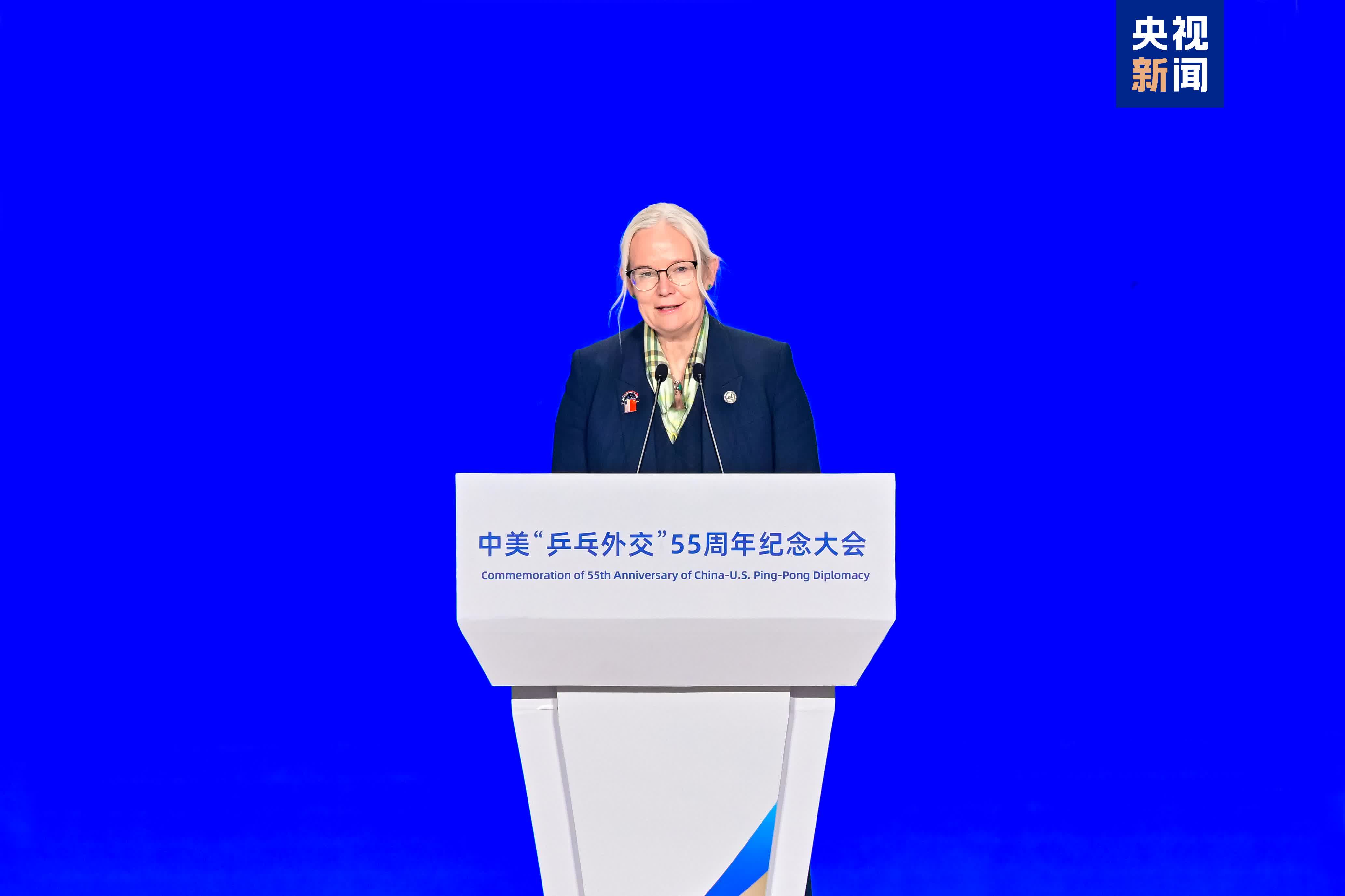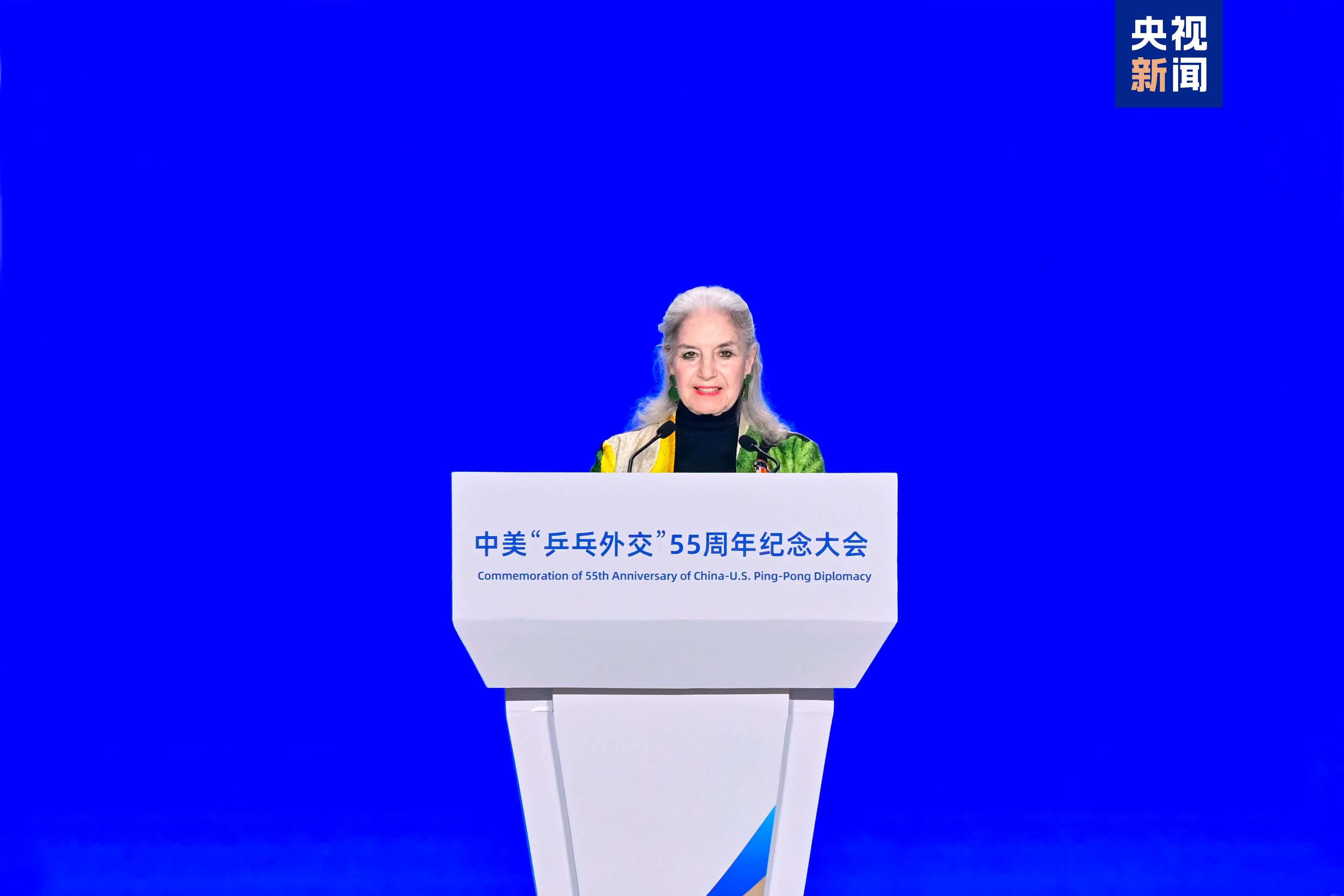 中宣部副部長、中央廣播電視總台台長慎海雄致辭時說,習近平主席的賀信是對我們深化中美友誼、開展交流合作的重要指引,必將激勵我們為推動中美關係穩定、健康、可持續發展作出新貢獻。55年前,一次春天的到訪,重新開啟兩國人民友好往來的大門。55年後的今天,「乒乓外交」蘊含的政治智慧和戰略遠見,愈發彰顯出以對話代替對抗、以善意化解隔閡的力量。中央廣播電視總台堅持從歷史中汲取智慧和力量,推動中美人民在交流合作中相知相親、在互學互鑒中攜手前行,共同拉緊友誼紐帶。我們以文化為媒,做中美人文交流的「傳播者」;以科技為帆,做創新技術合作的「推動者」;以交流為橋,做中美友好事業的「耕耘者」。站在中國「十五五」開局的新起點上,總台願與各界朋友發揚「同球共濟」精神,為推動構建人類命運共同體貢獻更多力量,讓中美友誼之樹茁壯成長。