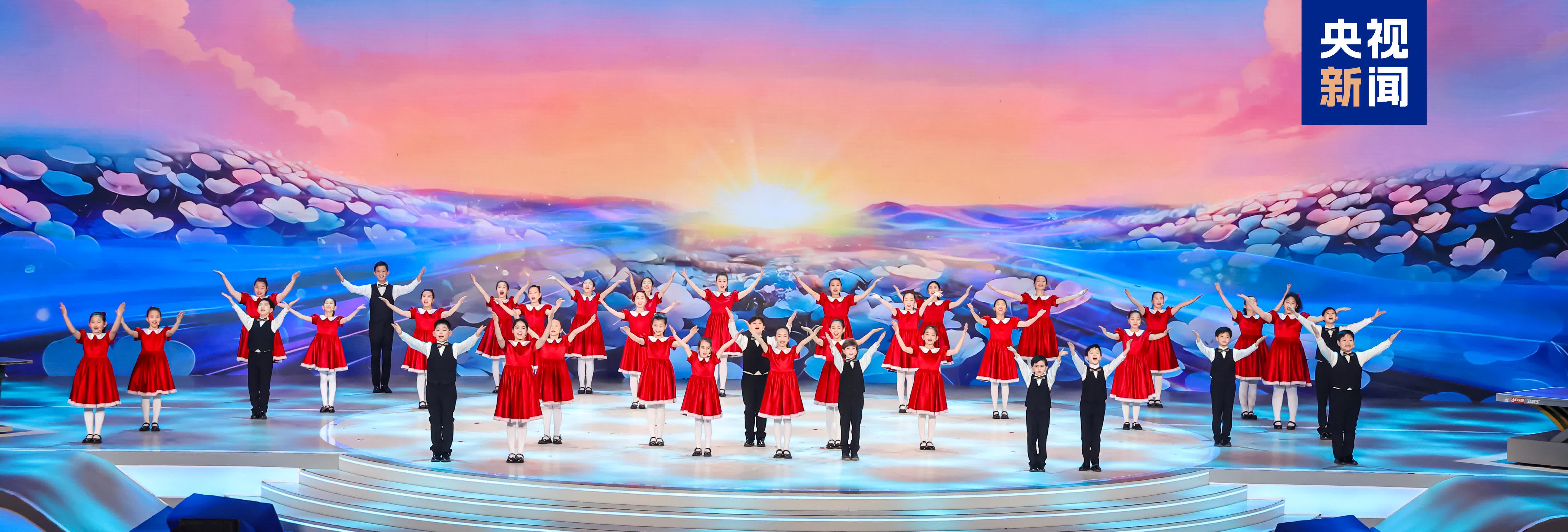 中美青少年現場合唱歌曲《銀球飛舞花盛開》,以清澈悠揚的歌聲,唱出了兩國青少年攜手同行、共築友誼的美好願景。
