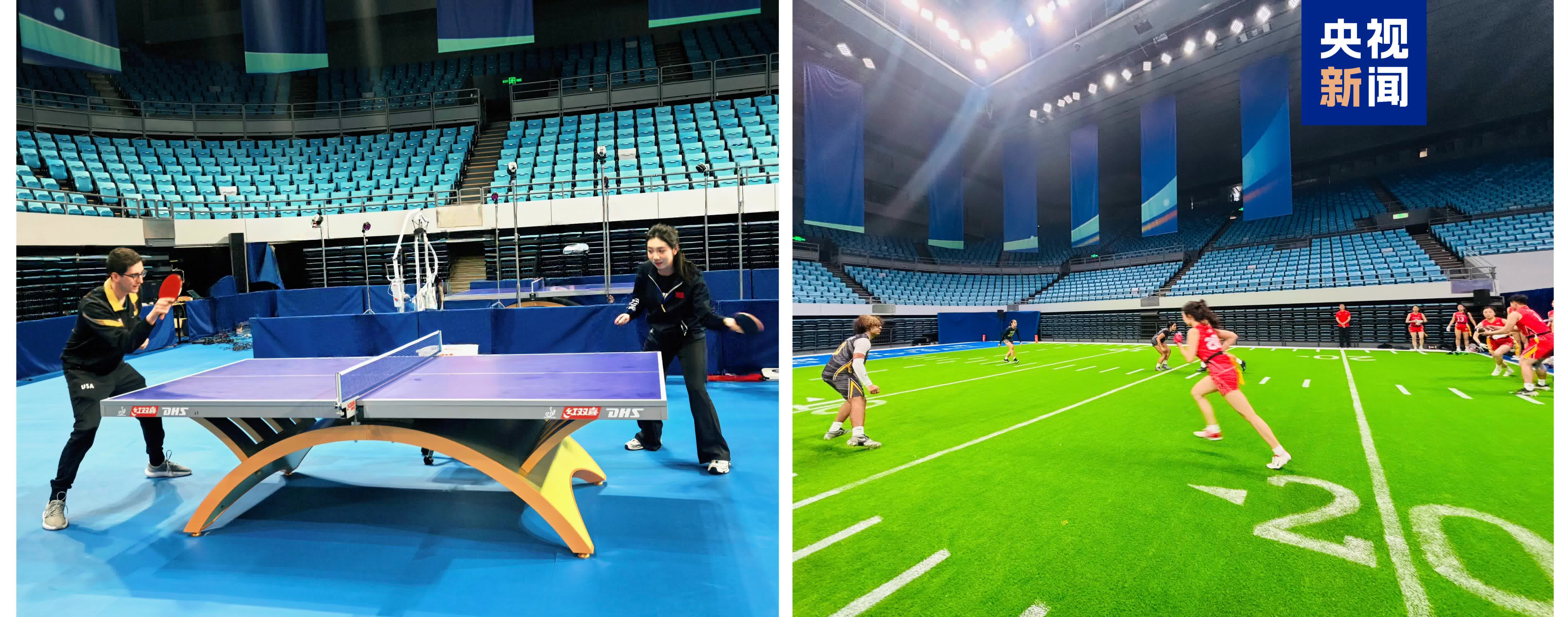 在乒乓球與橄欖球跨項目互動體驗區,中國乒乓球名將鄧亞萍、張怡寧、馬龍、閻森與美國國家橄欖球聯盟球員代表、美國女子腰旗橄欖球隊代表及華盛頓州塔科馬市林肯中學腰旗橄欖球隊隊員,分別展開乒乓球對練、橄欖球互動。雙方互贈簽名乒乓球拍與簽名橄欖球,以體育信物傳遞友好情誼。