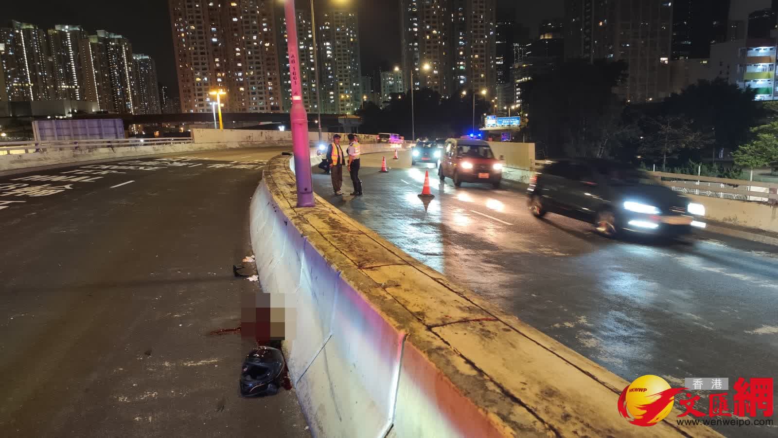據悉,男死者陳陳,32歲。他事發前與友人遊車河後由清水灣各自回家,事主行最前,詎料到上址失事自炒撞壆拋飛,期間疑撞中燈柱才跌落對面行車線。