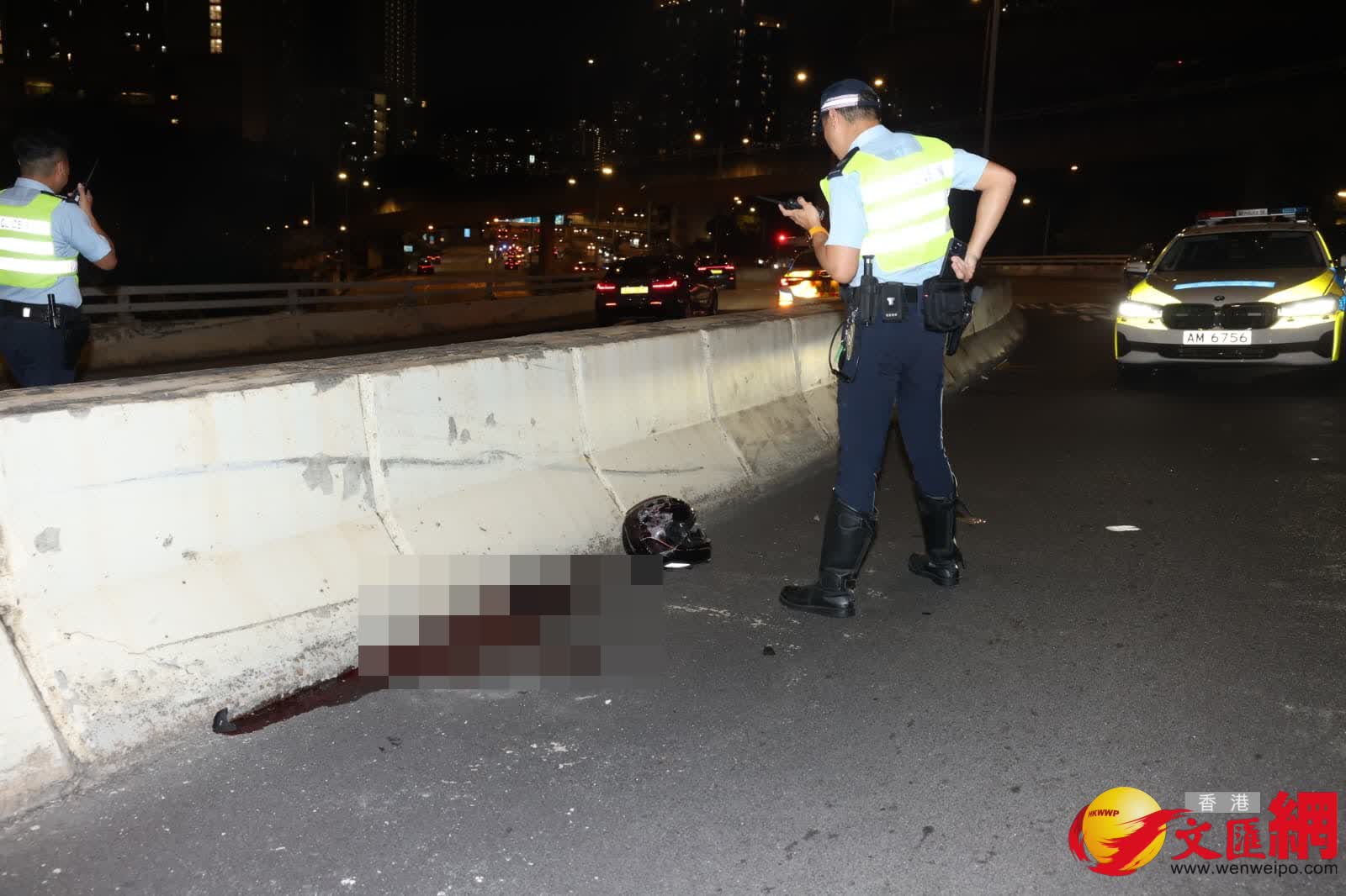 救援人員到場迅將一名年約30多歲受傷陷入昏迷的男子送往聯合醫院搶救,惜搶救至晚上11時39分不治。在警員到場前,事主的友人則將失事電單車推落橋。事後現場所見路中石壆邊遺下大灘血跡和一個相信屬於事主的頭盔。