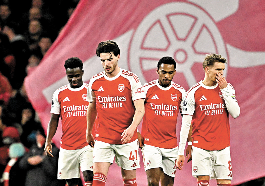 英超阿仙奴目前手握9分領先優勢,不過要重奪失落22年的聯賽冠軍,未來三場聯賽成敗至為關鍵,本周阿仙奴將於主場迎戰般尼茅夫,球隊經過多線作戰後疲態盡現,今場更有兩大核心馬田奧迪加特及布卡約沙卡或因傷缺陣,面對以逸待勞的般尼茅夫將有隱憂。(Now621、611台今晚7:30p.m.直播) ●香港文匯報記者 郭正謙