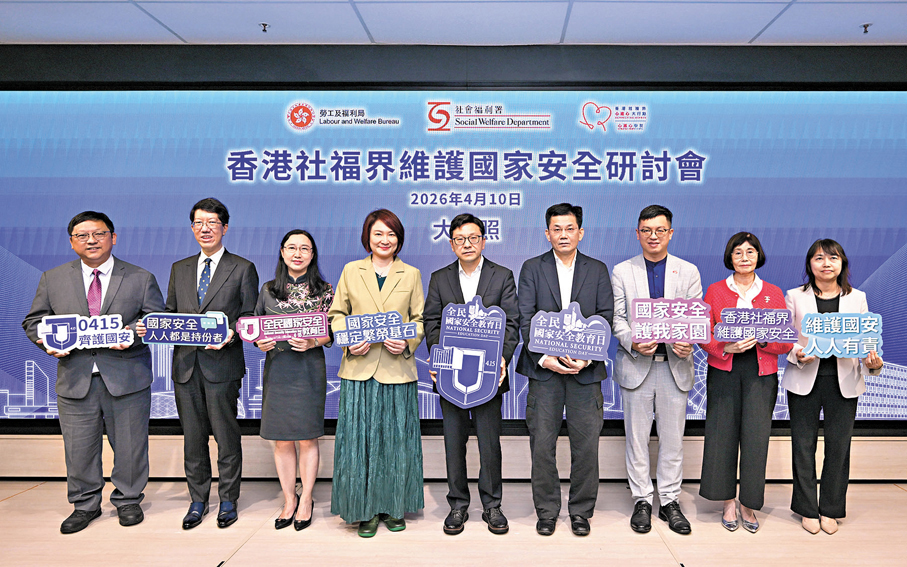 香港文匯報訊 特區政府勞工及福利局、社會福利署和香港社福界心連心大行動昨日合辦香港社福界維護國家安全研討會,探討香港社福界與國家「十五五」規劃的對接,並聚焦交流社福界自發維護國家安全的舉措,以護航「一國兩制」事業的高質量發展。