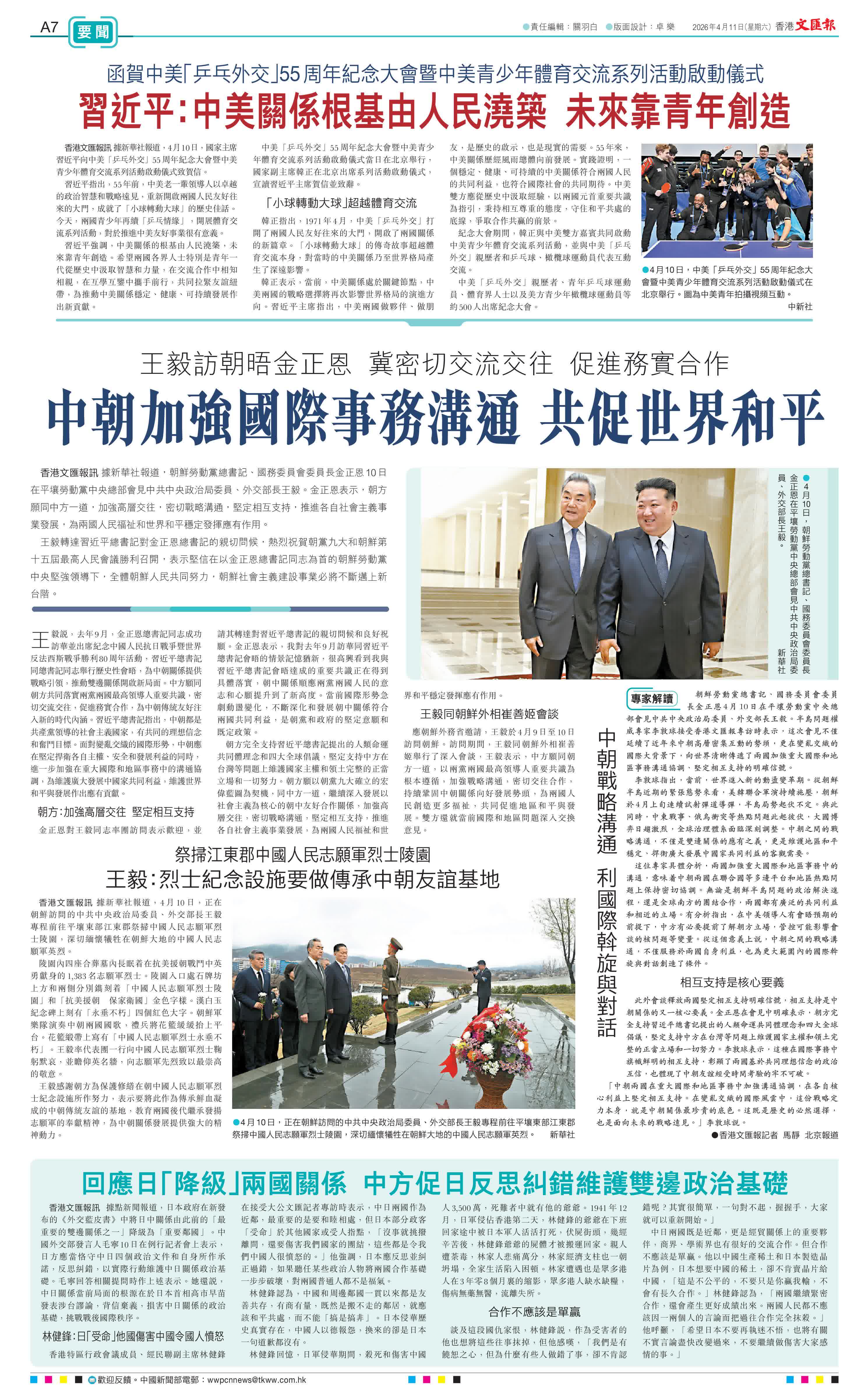 王毅說,去年9月,金正恩總書記同志成功訪華並出席紀念中國人民抗日戰爭暨世界反法西斯戰爭勝利80周年活動,習近平總書記同總書記同志舉行歷史性會晤,為中朝關係提供戰略引領,推動雙邊關係開啟新局面。中方願同朝方共同落實兩黨兩國最高領導人重要共識,密切交流交往,促進務實合作,為中朝傳統友好注入新的時代內涵。習近平總書記指出,中朝都是共產黨領導的社會主義國家,有共同的理想信念和奮鬥目標。面對變亂交織的國際形勢,中朝應在堅定捍衛各自主權、安全和發展利益的同時,進一步加強在重大國際和地區事務中的溝通協調,為維護廣大發展中國家共同利益,維護世界和平與發展作出應有貢獻。