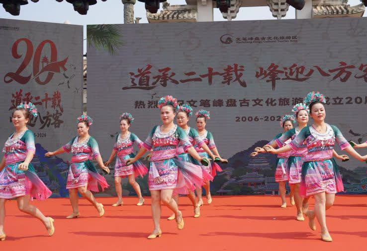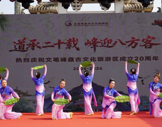 文筆峰盤古文化旅遊區於2006年正式開園,二十年砥礪深耕,從一片荒巒發展為集文化傳承、生態觀光、康養休閒於一體的國家4A級景區,成為瓊北地區南宗道教文化的重要地標。中野旅遊產業發展有限公司文筆峰盤古文化旅遊區負責人李鳳嬌在致辭中表示,二十年來,景區堅持「文化為魂、生態為基、文旅為翼」,深挖盤古文化、南宗道教與養生文脈,守正創新,讓千年文脈在青山古觀間生生不息。同時,景區嚴守生態底線,將生態優勢轉化為文旅發展動能,與地方經濟共生共榮。