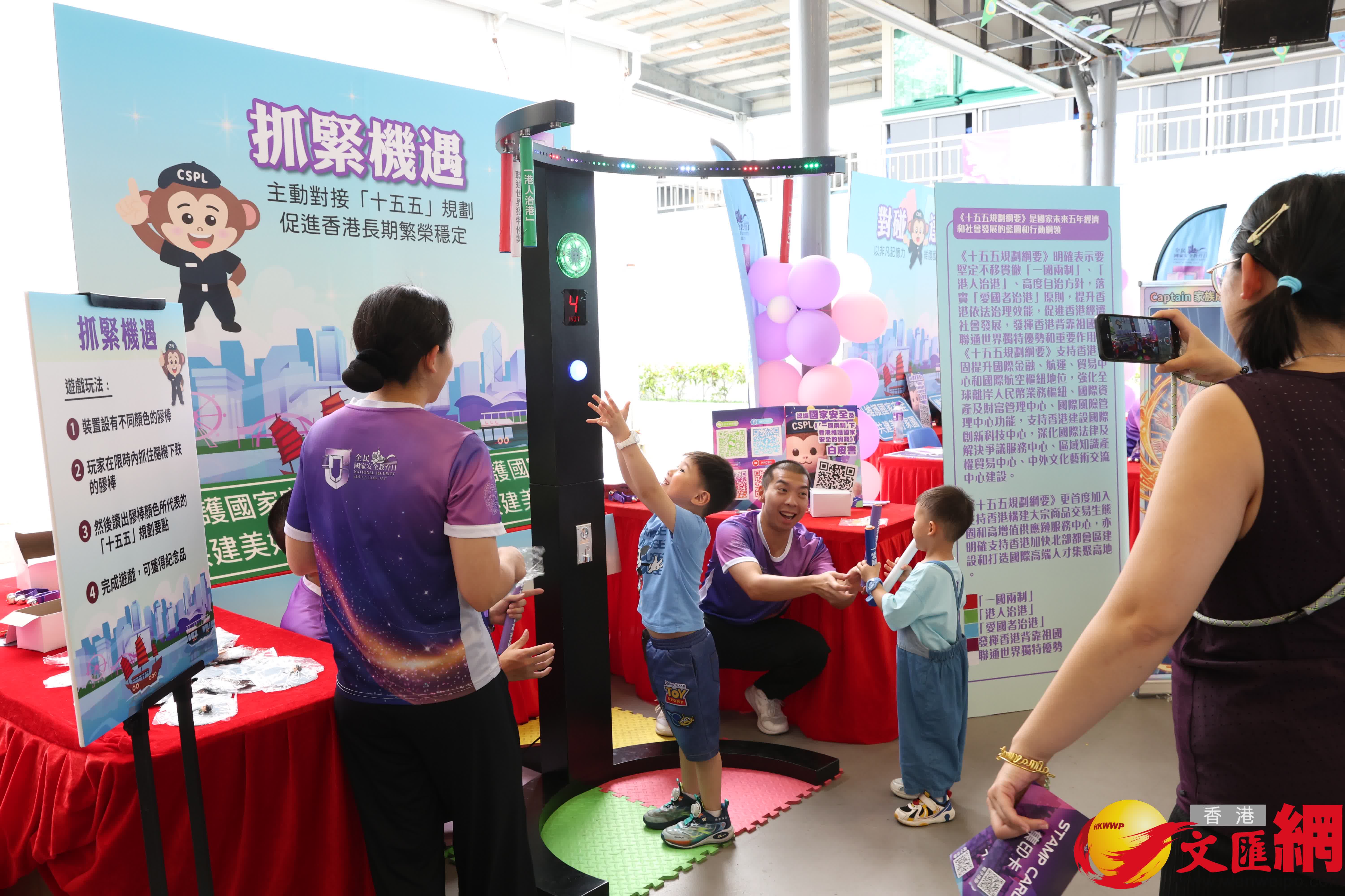 有家長接受香港文匯報訪問時表示,8歲孩子近日看電視劇後想知道罪犯的下場,所以在Facebook看到有此次活動後,特意登記索取門票讓一家大細寓玩於學,孩子今天玩遍了不同富教育意義的攤位遊戲,也深刻明白要維護國安、做個「好人」的重要性。