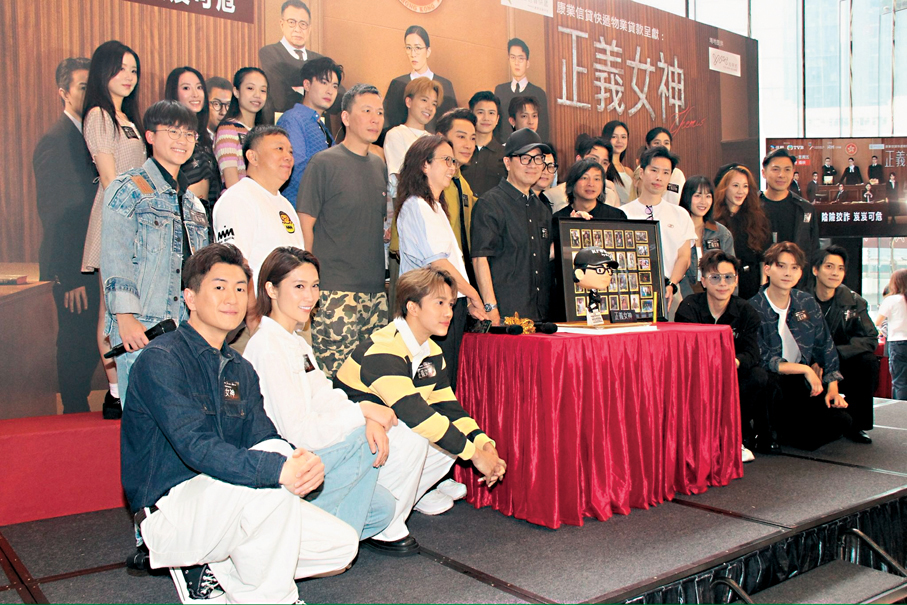 香港文匯報訊(記者 達里)譚耀文(阿譚)、周嘉洛、蔣祖曼、馬貫東等人昨日到商場宣傳熱播劇《正義女神》。主角佘詩曼(阿佘)雖然未能到場,但她預錄片段隔空支持劇集,並預祝總監製鍾澍佳(佳導)生日快樂,大會同時送上佳導的人形蛋糕和《新聞女王》演員的簽名閃卡。《正義女神》雖然已在內地播畢,但無礙香港收視創佳績,首周跨平台收視有23.2點,觀看人數約149萬人次,暫成本年香港收視最高的劇集。