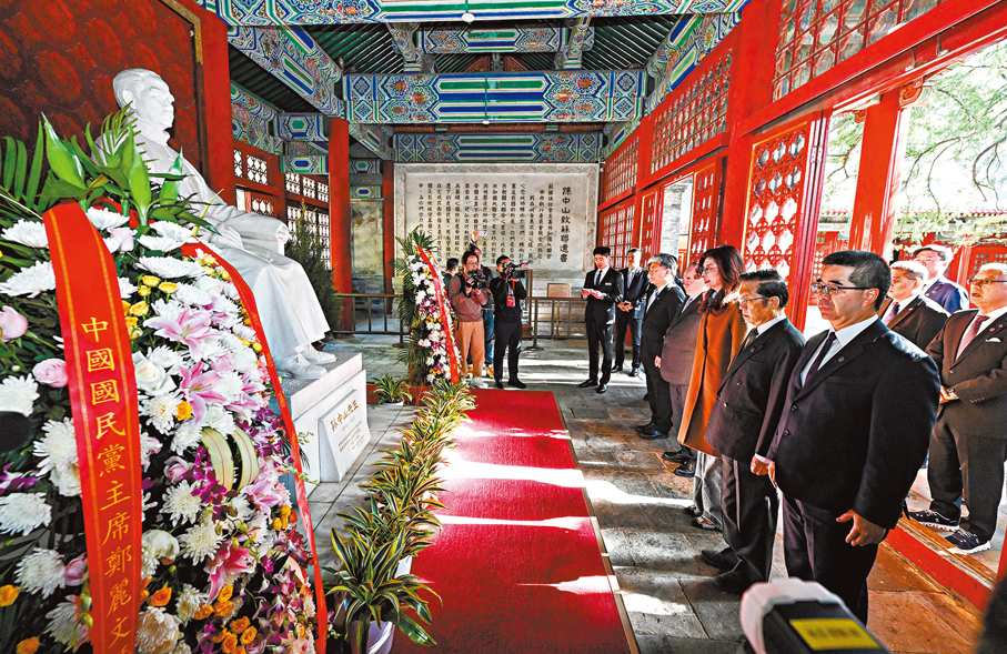 香港文匯報訊 綜合記者朱燁及中新社報道,中國國民黨主席鄭麗文一行於11日上午赴北京西郊香山碧雲寺,拜謁國民黨總理孫中山衣冠塚。鄭麗文一行前往紀念堂中的孫中山漢白玉全身塑像行三鞠躬禮,兩旁擺放的花圈緞帶上書寫「總理孫中山先生靈鑒」,落款「中國國民黨主席鄭麗文暨全體同志敬獻」。