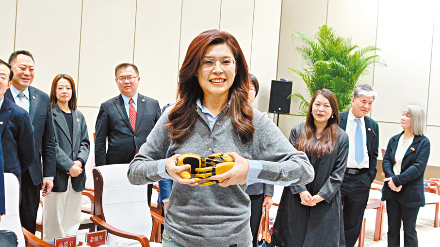 座談會結束後,鄭麗文雙手各持一隻金色靈巧手,將它們輕輕相握,臉上洋溢着愉悅的笑容,這滿含笑意的一幕,成為此次中關村之行的暖心片段,也象徵着兩岸科技交流的美好期許。