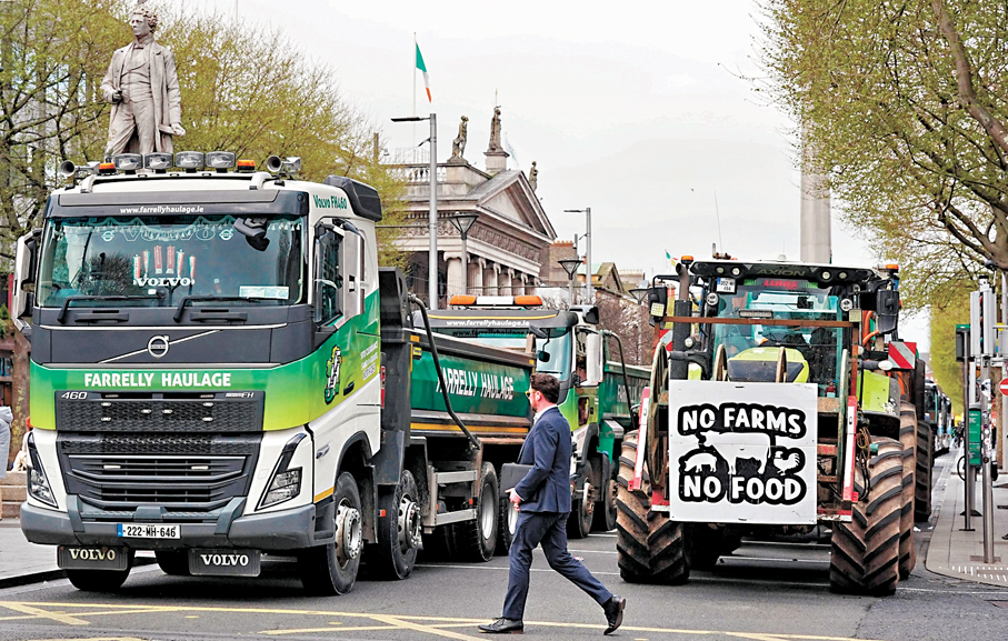 為應對因中東戰爭而飆升的油價,愛爾蘭政府早前提出2.5億歐元(約23億港元)減稅方案,但運輸業界及農民不滿措施未能抵消成本上升,發起示威活動。由拖拉機等車輛組成的車隊封鎖當地主要幹道,包括首都都柏林通往機場的高速公路,全國多地出現長長車龍。位於第二大城市科克的全國唯一煉油廠,周邊道路被示威者冒雨封鎖,運油車無法通行。