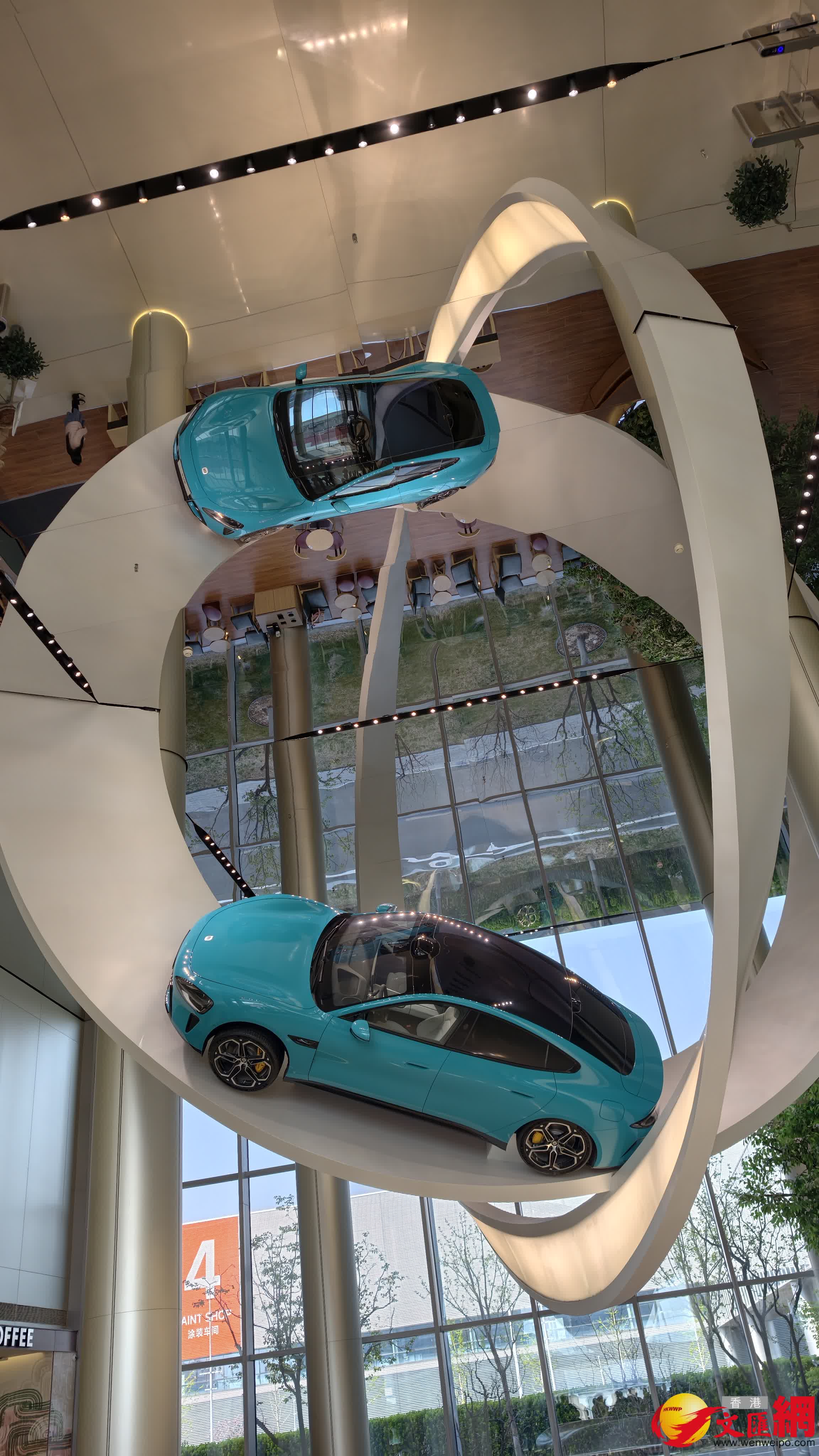 (香港文匯網記者朱燁 北京報道)中國國民黨主席鄭麗文一行訪問大陸的行程接近尾聲,12日上午,鄭麗文等來到小米汽車參觀。記者在體驗中心看到,首先映入眼帘的是一個倒掛的小米汽車,與天花板上的鏡面倒影相應,十分的炫酷。