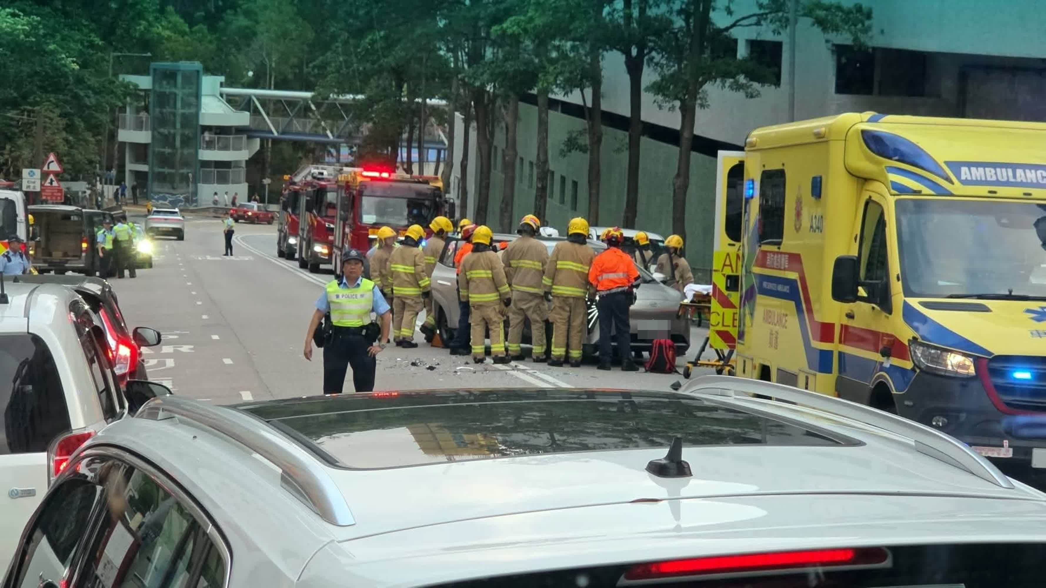 香港文匯報訊(記者 蕭景源)今日(12日)下午5時15分,一輛私家車在鑽石山蒲崗村道近富山邨與一輛客貨車發生相撞,私家車右邊車身毀爛,女司機頸痛一度被困,要由消防員救出轉交救護車送往伊利沙伯醫院治理。受事故影響,現場交通擠塞,警方正調查意外原因。
