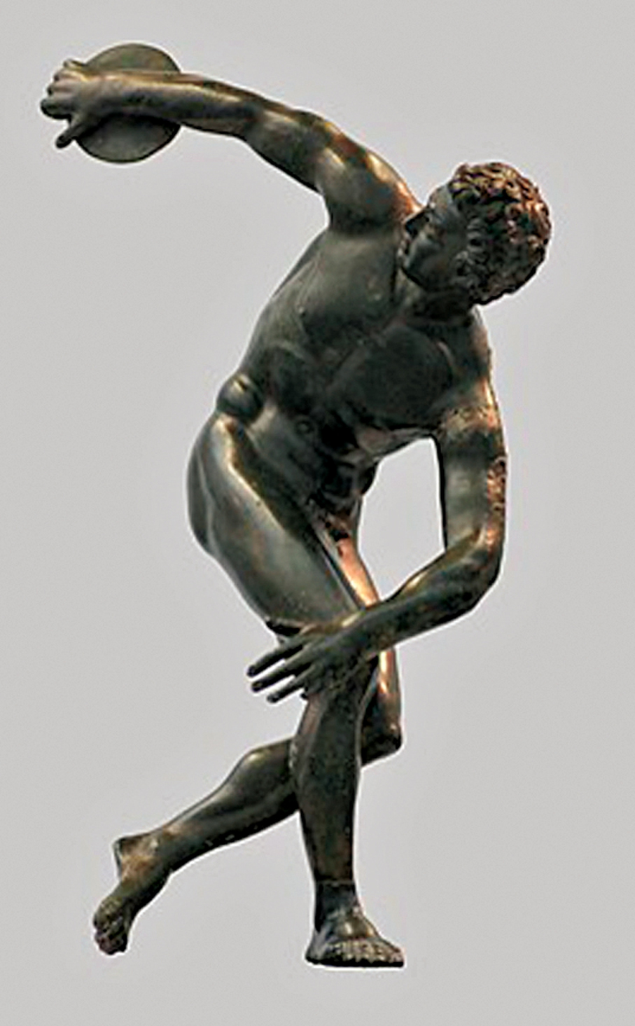 在最近的畫班,我給學生介紹了「擲鐵餅者」(Discobolus)雕塑,是古希臘雕塑家米隆(Myron)的代表作,有說成品誕生於約公元前450年,原屬青銅雕塑,但原作失傳已久,我們今天在羅馬國立博物館、特爾梅博物館、梵蒂岡博物館見到的皆是復刻品。坊間展出的不少已改為簡單而方便的石膏製作。