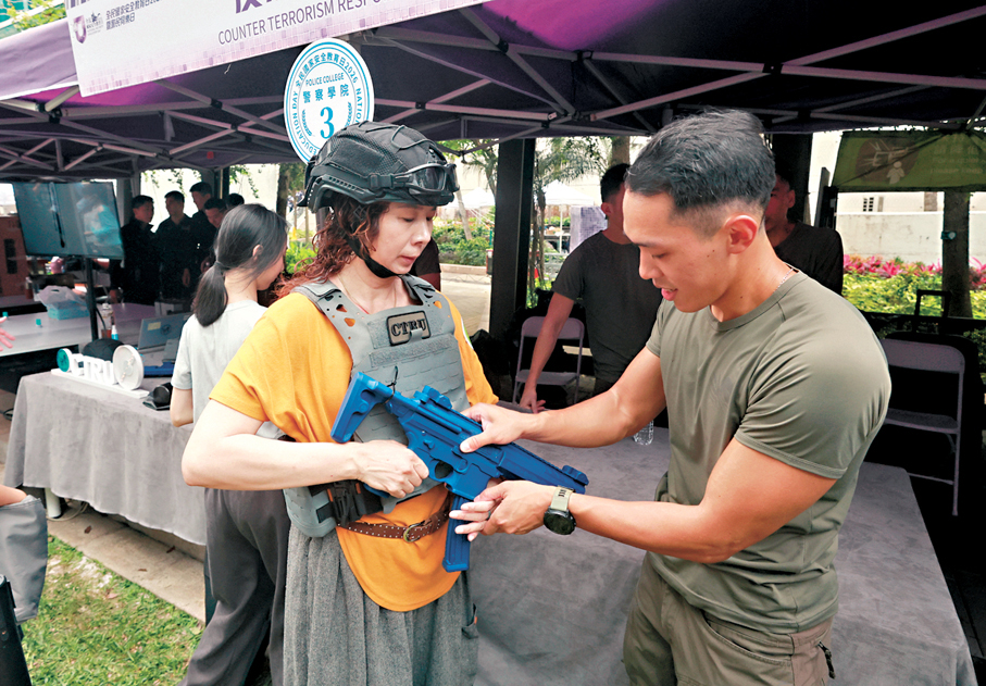 本周三(15日)將是第十一個「全民國家安全教育日」。警務處昨日於金鐘夏慤花園(提子公園)舉辦「全民國家安全教育日2026暨警民同樂日」,消防處亦在將軍澳消防及救護學院舉行開放日,吸引大批市民參加。有家長表示,孩子在參觀所有攤位後告訴她,香港是中國的一部分,讓她覺得國安活動強化了孩子的愛國教育。有準備投考消防員的市民表示,開放日讓他深刻體會到消防工作與維護國家安全、社會穩定之間的密切關係。
