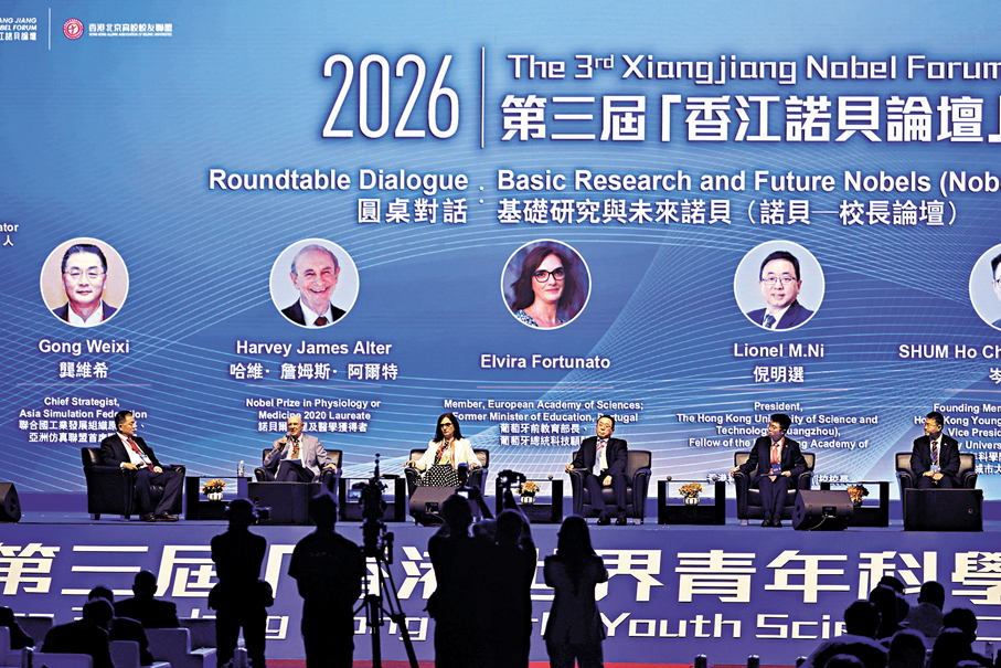 香港文匯報訊(記者 陸雅楠)昨日開始的香江諾貝論壇進行多場主旨演講及圓桌對話。其中首場圓桌對話以「基礎研究與未來諾貝」(諾貝—校長論壇)為題,從多個維度探討基礎研究的機遇與挑戰。2020年諾貝爾生理學或醫學獎得主哈維·阿爾特(Harvey J. Alter)直言,地緣政治、霸權主義及強權政治的抬頭,會對科研造成深遠影響,但香港與內地可視為「例外」,兩地對教育、科學創新與科研投入的高度承諾,他形容這份投入「可作世界榜樣」。