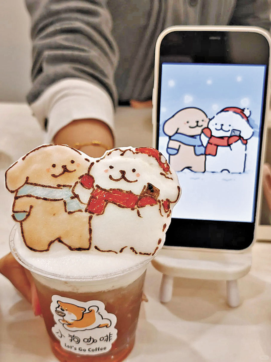 到店飲咖啡,可以仔細觀察店舖的裝修,有不少熟悉的TVB元素,正宗港風港味,更貼有不少廣東話趣味標語,相信會令到訪的港人會心一笑。早前,店舖就因一款「財神拿鐵」走紅網絡。這杯別具好意頭的飲品,是在拿鐵上放了一張用糯米紙製成的財神畫像,糯米紙會融化進飲品中,也可以直接食用,是不少本地打工仔女開工接財神必備的開運飲品。除了財神畫像外,還有不同的圖案可供選擇。