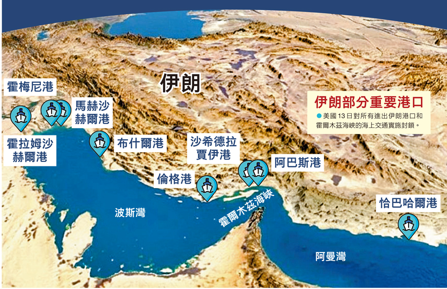 香港文匯報訊 美國與伊朗的談判進展不順,美國總統特朗普試圖祭出新招數。他於4月12日宣稱,美國將開始對所有進出伊朗港口和霍爾木茲海峽的海上交通實施封鎖。美軍中央司令部隨後宣稱,依照總統命令於美東時間13日上午10時(香港時間晚上10時)開始實施封鎖。在美軍開始對進出海峽船隻進行阻截後,特朗普13日在社媒發文說,如果伊朗的「快速攻擊艇」靠近美軍的封鎖區,它們將立即被消滅。伊朗方面警告,任何軍事船隻試圖靠近霍爾木茲海峽的行為,都會被伊方視作違反停火協議,顯示霍爾木茲海峽發生武裝衝突、爆發「鎖喉戰」的風險上升。