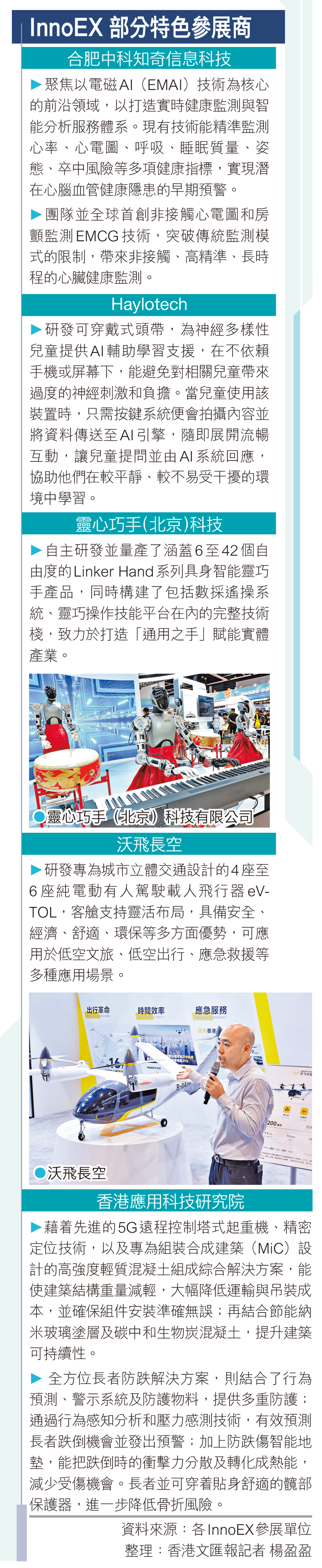 香港文匯報訊(記者 楊盈盈)由特區政府創新科技及工業局與香港貿易發展局合辦的香港國際創科展(InnoEX)昨日正式揭幕,展覽以「創新·智動·起飛」為主題,一連四日在會展舉行,吸引世界各地的科技企業、初創及買家雲集香港,共同探索創科合作與商貿機遇。香港文匯報在會場訪問了多名來自英國及內地的參展商,他們均表示,看好香港「背靠祖國、聯通世界」的獨特地位,認為在此不僅可對接內地龐大的製造供應鏈、產業配套及應用場景,亦具備高度國際化優勢,有助接通海外市場、吸引投資及尋找合作夥伴,是創科企業「引進來、走出去」的重要平台。