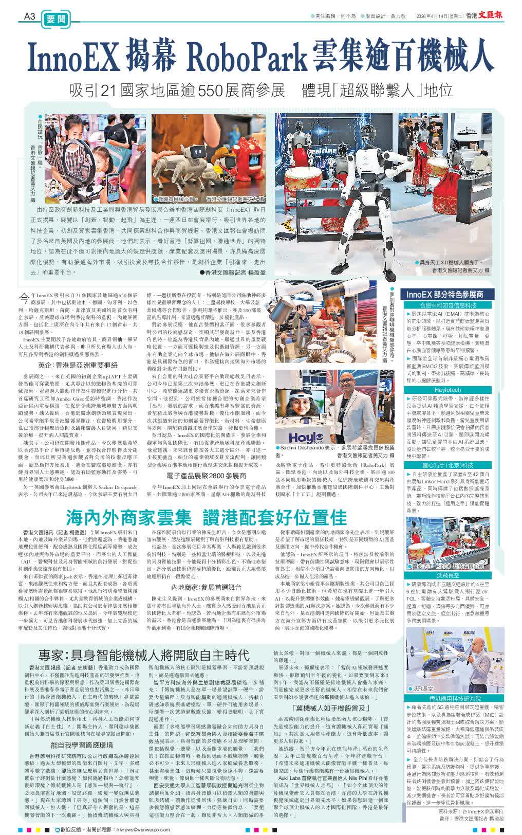 對於參展反應,他直言整體相當正面,很多參觀者對公司的技術感新奇,突顯其研發創新性。談及香港角色時,他認為香港具背靠內地、聯通世界的重要戰略位置,一方面可連接製造及供應鏈資源,另一方面亦有助企業走向全球市場。他指在海外展商眼中,香港是具國際特色的窗口,作為連接內地與海外市場的橋樑對企業有明顯幫助。