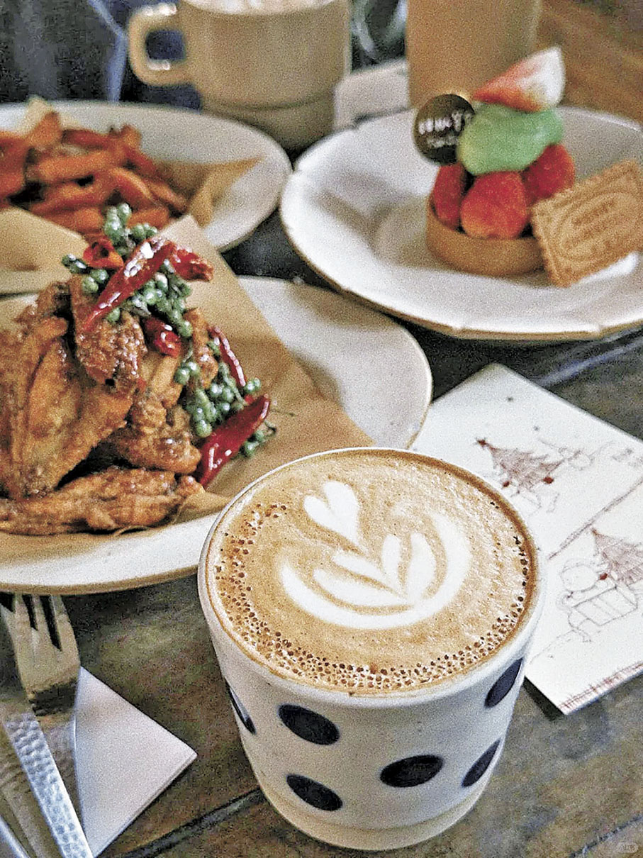 食物方面,相信絕對不會「中伏」,不少網上評論也指食物對得起價錢。大家除了可以點飽肚的吐司或早午餐,亦有其他小食。「花椒雞翅」(¥38)令人驚艷,酥脆外皮裹着淡淡花椒香,肉質鮮嫩爆汁,微麻越食越上頭,絕對是開胃小食;小編私心推介「豆腐芝士蛋糕」(¥38),豆乳清香撲鼻,同時甜度不高,適合不太嗜甜的港客。另一顏值高的「抹茶巧克力撻」(¥38)有超濃郁抹茶味,餡內有麻糬,造型也適合打卡。