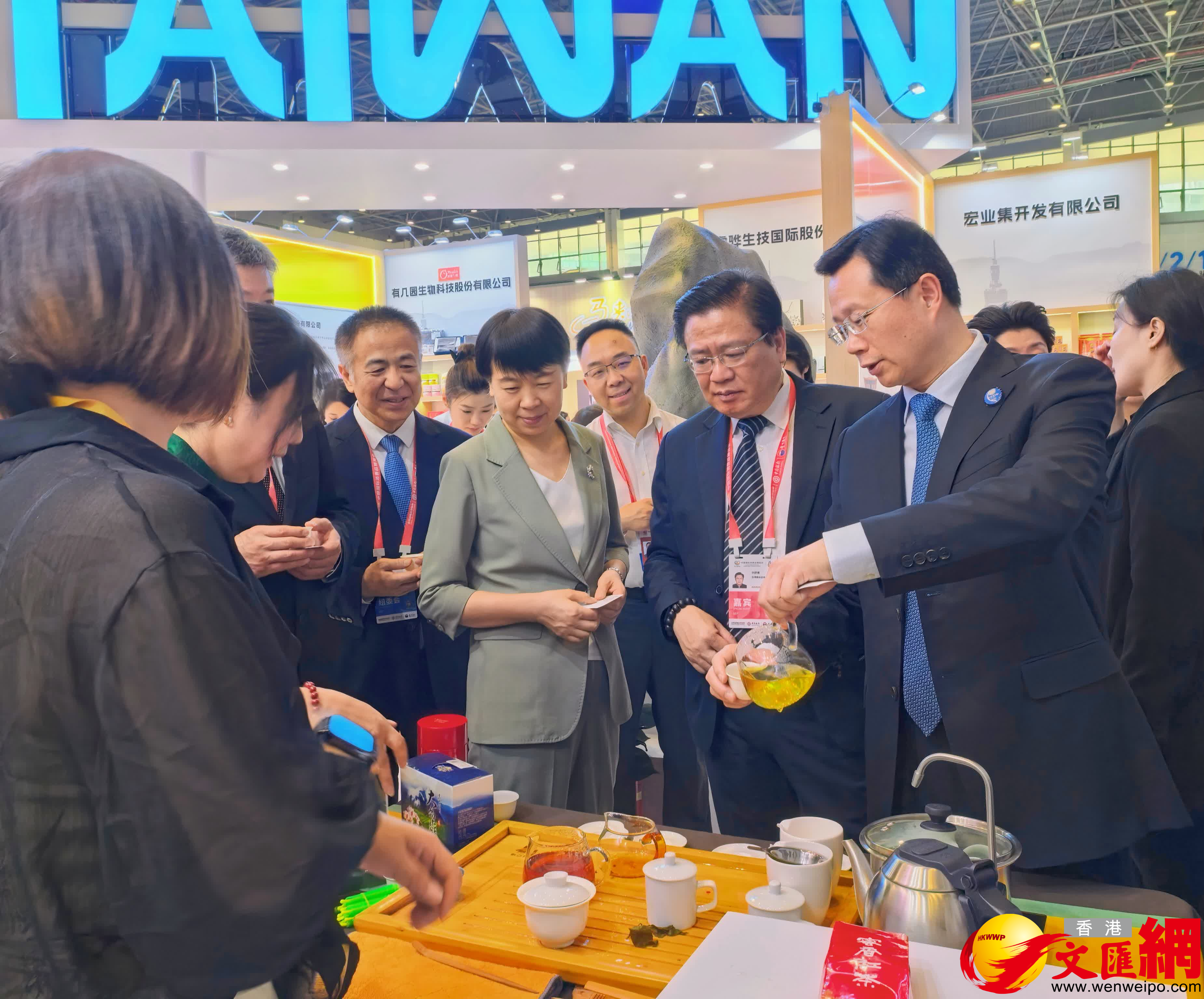 本屆「消博會」首次設立了台灣特色展區,由台灣商業總會牽頭組織,助力兩岸經貿文化交流。台灣特色展區佔地共360平方米,共有20家台企攜24個品牌入駐,其中包括旺旺集團、金門酒廠等知名企業,此外,展區還匯聚了美湛雲瓷(文創陶瓷)、老太陽堂(伴手糕點)、竹葉堂(台灣高山茶)等優質品牌,涵蓋文創陶瓷、台灣高山茶、伴手糕點等多元品類。