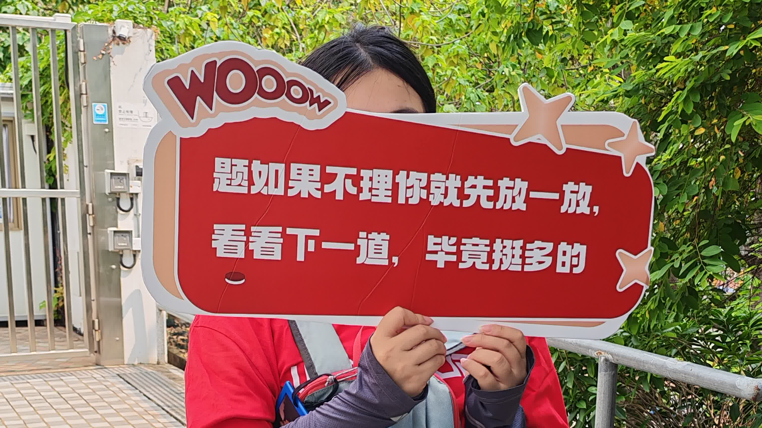 現場所見,有深圳補習機構派出職員於上午10時已在試場外守候,待考生離場時為他們打氣。該機構更特製橫幅,寫上「題如果不理你就先放一放,看看下一道,畢竟挺多的」風趣字句,冀協助學生放鬆心情。