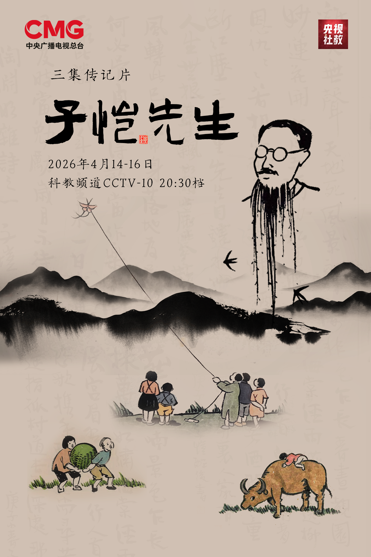 2026年4月14日至16日,中央廣播電視總台科教頻道(CCTV-10),推出三集人物傳記片《子愷先生》。世間有清風朗月,亦有溫潤君子,以一生踐行熱愛,以筆墨安放初心。