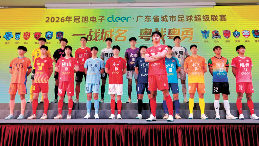 香港文匯報訊 據新華社報道,2026年廣東省城市足球超級聯賽(「粵超」)周一(13日)舉行新聞發布會,公布賽事將於25日開幕,全省21支地市代表隊共計826名球員報名參賽。