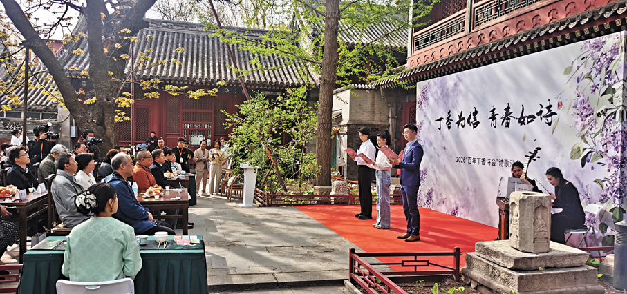 百年丁香盛放時,京城古寺飄詩韻。近日,「百年丁香詩會」在北京西城隆重舉行。徜徉在法源寺、報國寺、大觀園,在鳥語花香之中,追憶起泰戈爾、徐志摩、林徽因的風雅詩會,行走在詩樂會、飛花令和CityWalk的場景之中,一場融匯了「花與詩」「古與今」「中與外」的詩壇盛會,正成為首都「人間四月天」裏一道最靚麗的風景線。