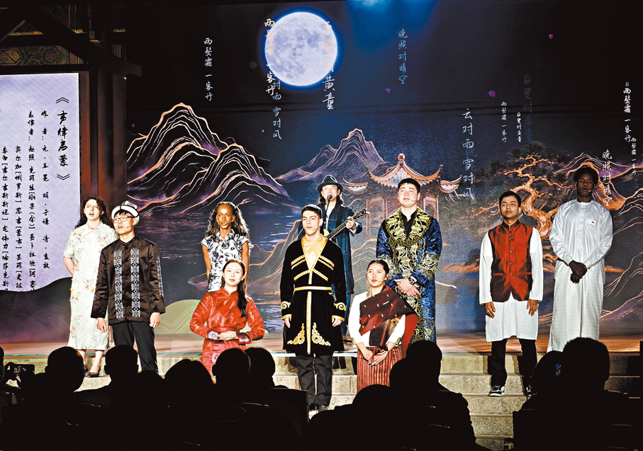 開幕式現場,一個個唯美動人、直擊人心的表演,將青春的詩意推向了高潮。「我的名字,飽含着父母的期許與祝願,這就是爸爸媽媽送給我的『第一首詩』……」在稚嫩又嘹亮的童音中,詩歌回歸了人間真情。而在外國留學生學習中國詩歌的旋律中,在伊拉克記者方浩明誦讀「絲路故事」的回響裏,中國詩歌更如風飄遠,彷彿飄向那漫長悠遠的絲路古道。