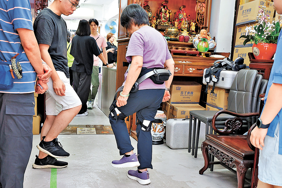 大埔宏福苑居民下周一(20日)起可分批返回單位執拾個人物品,由於大廈的升降機受損無法運行,長者及高層住戶徒步上樓是一大挑戰。專為宏福苑受火災影響居民及區內街坊設立的社區支援空間「宏福客廳」與廠商合作,向宏福苑居民免費借出50套AI(人工智能)外骨骼設備,佩戴後猶如在雙腳加裝「摩打」,可更輕易上樓。昨日義能聯合會舉辦「AI 外骨骼設備操作考核及借用計劃」,展開設備考核,協助宏福苑居民熟練使用外骨骼。多名宏福苑居民到大埔「宏福客廳」試用AI外骨骼,有居民試用後讚「好像有兩隻無形的手幫你抬起腳」,而負責機構指,已收到百多名居民申請使用。 ●香港文匯報記者 吳健怡