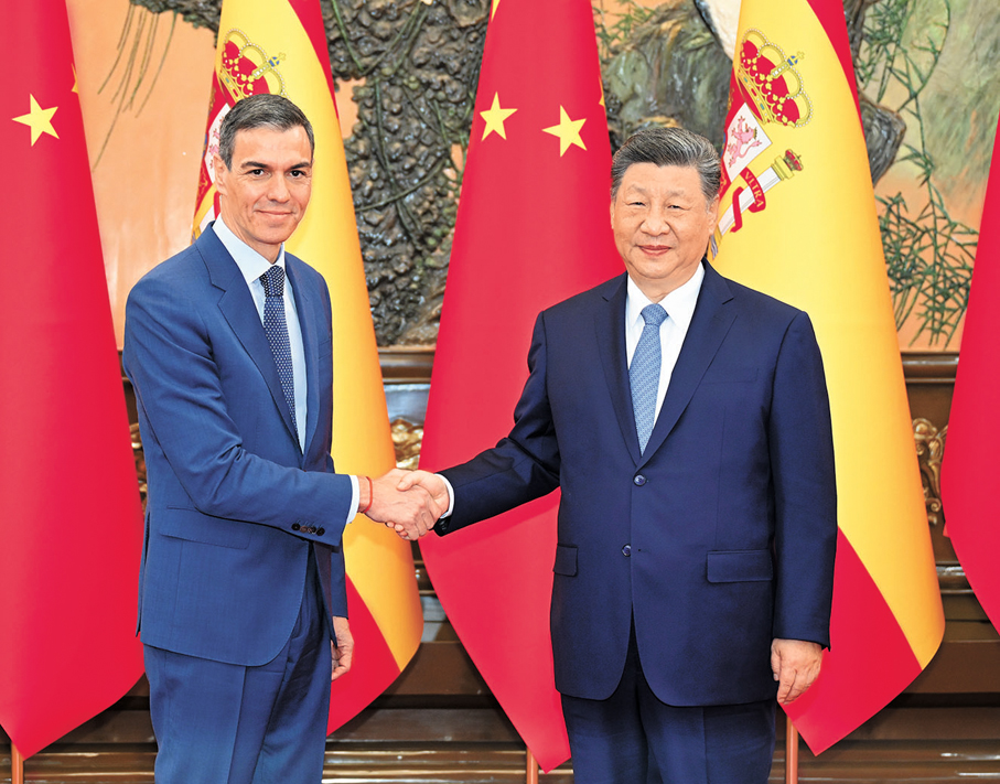 桑切斯表示,我4年來4次訪華,表明雙方對西中關係的高度重視。中國企業在西投資合作有力促進了西經濟發展。西班牙堅定恪守一個中國原則,高度重視中國的大國地位,堅定致力於發展具有戰略定力的西中夥伴關係,希望加強貿易、投資、新能源等領域合作,促進人文交流。面對複雜嚴峻的國際形勢和頻發多發的衝突爭端,只有堅持多邊主義、推動構建多極世界才能為人類帶來持久和平。西班牙積極支持習近平主席提出的四大全球倡議,願同中方密切溝通協作,共同應對國際地緣政治、貿易保護主義、氣候變化等方面挑戰,維護國際法和多邊主義。西班牙反對「新冷戰」,反對「脫鈎斷鏈」,支持歐洲和中國增進溝通理解、加強合作。歐中關係健康發展符合雙方共同利益,也有利於世界和平穩定。