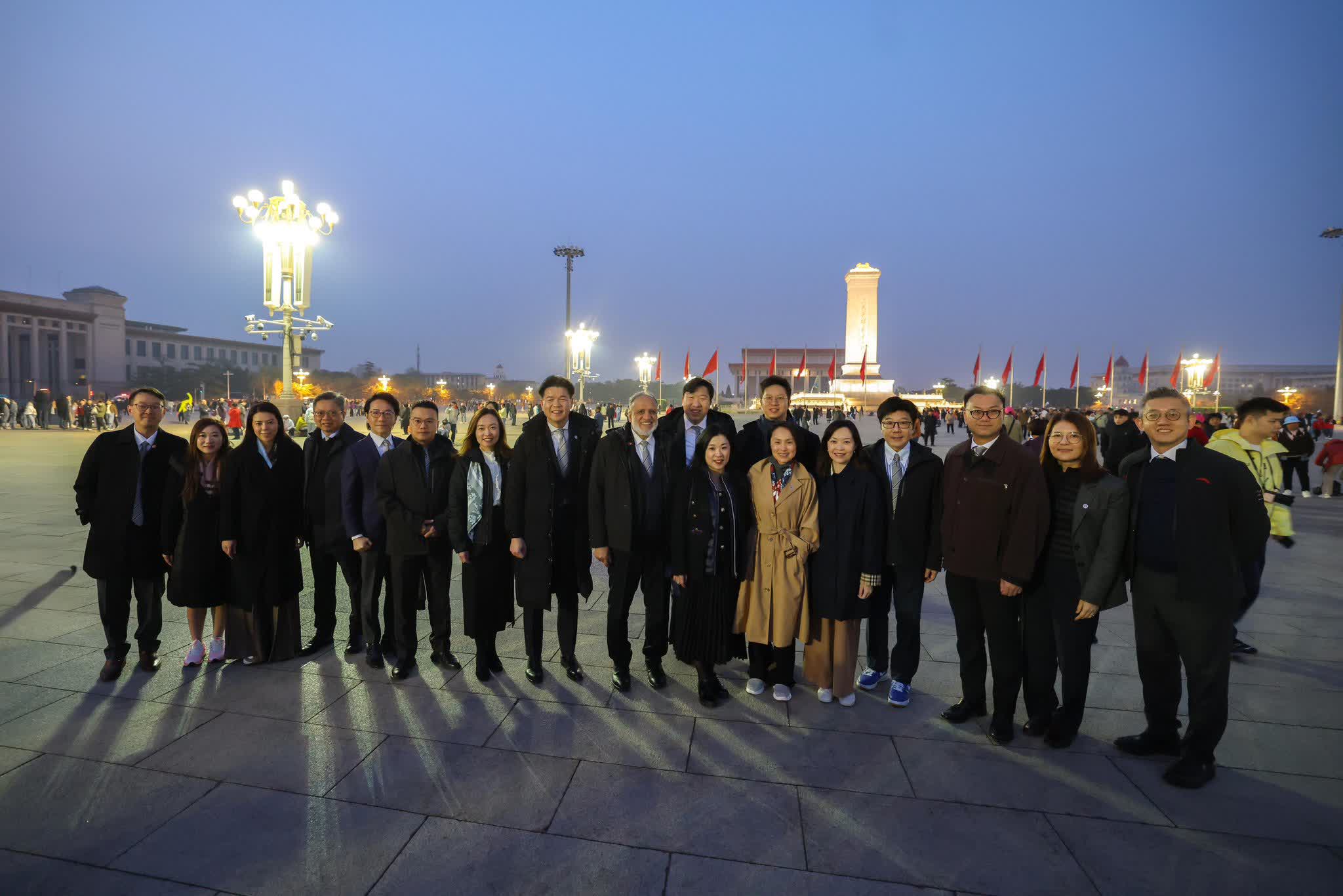 帖文又指,北京仍帶着初春的清寒,今晨東城區氣溫約9度,寒意猶在。但觀禮期間,代表團巧遇逾200名來自英華小學的小六學生,他們正於北京進行交流學習。兩代香港人在天安門廣場不期而遇,場面溫馨。代表團欣然與同學們合影留念,共同記錄這別具意義的一刻——既是見證,更是傳承。