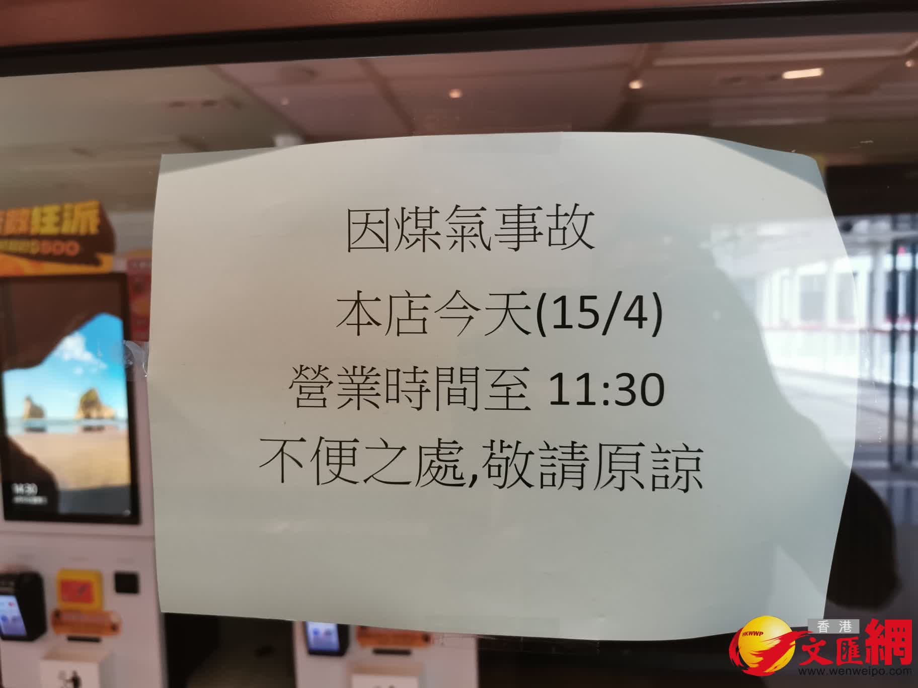另在中信大廈的連鎖快餐店「大家樂」亦貼出告示指「因煤氣事故」營業時間至上午11時半,有職員稱今日早上約8時開始沒有煤氣供應。在海富中心的「大家樂」快餐店亦指由早上開始至午市段後仍一直沒有煤氣供應,期間只能提供有限度服務,部分類別的食物無法供應。