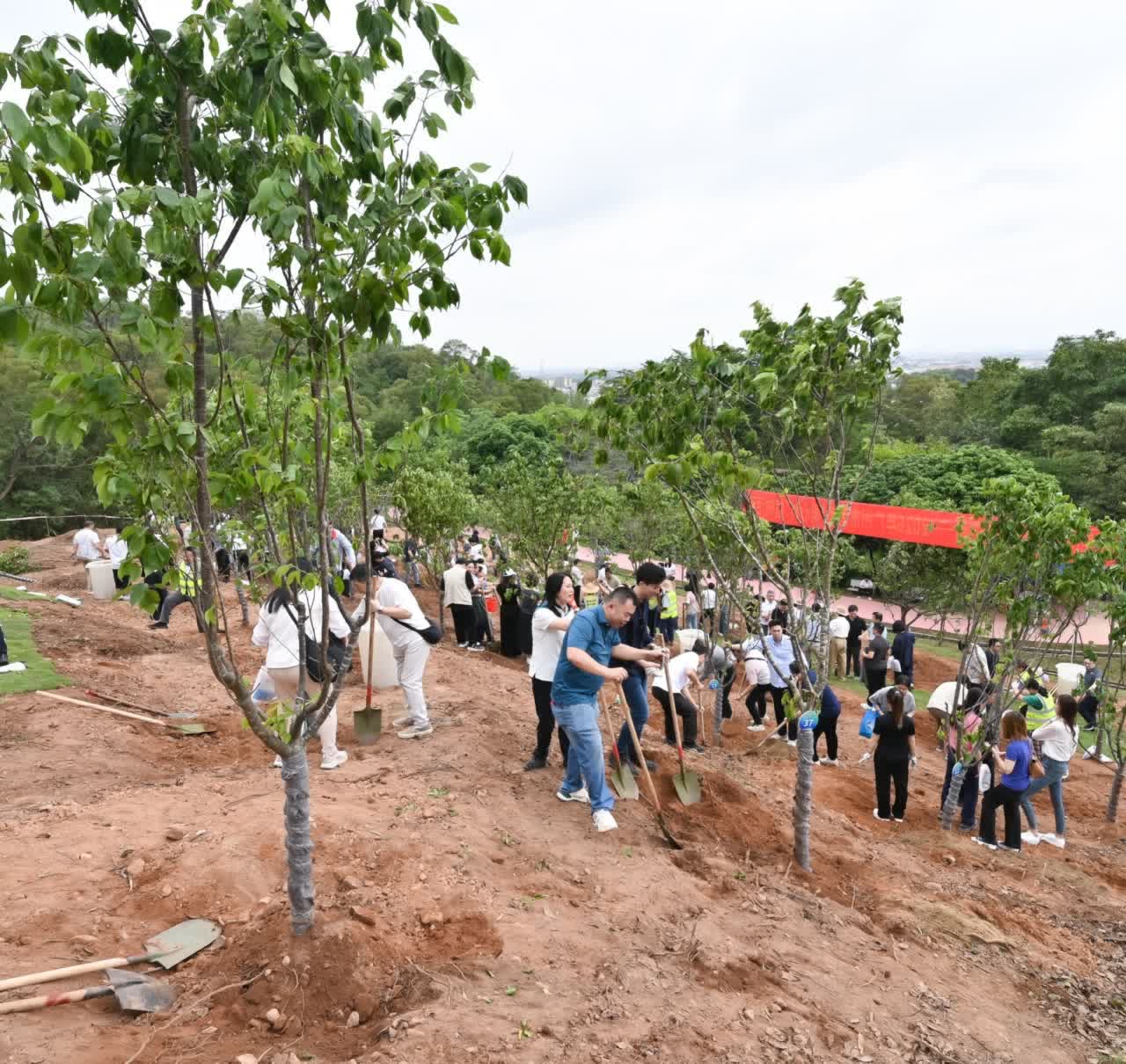 活動期間,同步舉辦「穗同心·共築綠美廣州」——2026年廣州市港澳「同心林」植樹活動,宣導會員鄉親、政協委員積極參與綠美廣州建設。活動現場,大家熱情高漲、分工協作,細緻扶苗、培土、澆水,一株株承載希望與生機的苗木扎根沃土、迎風挺立,共同構成綠意盎然的「同心林」。據統計,近年來港澳同胞已累計為綠美廣州建設捐資超200萬元,種植苗木超2500棵。