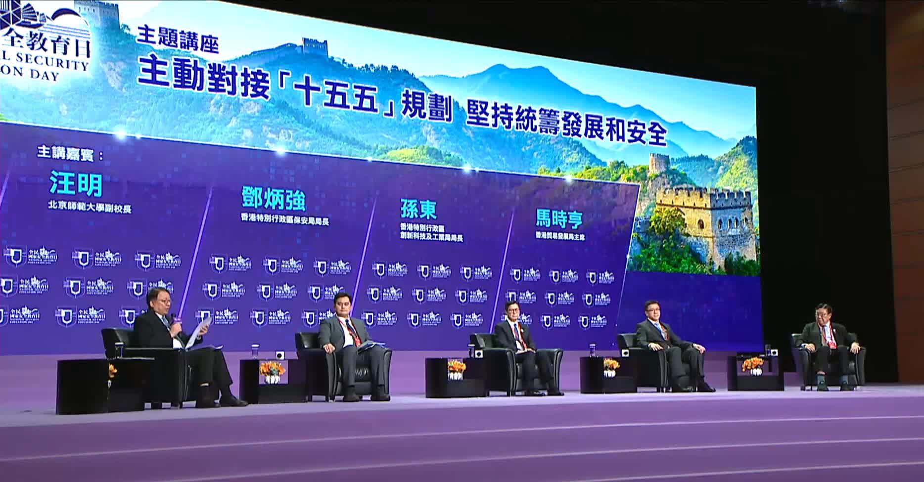 香港文匯報訊(記者 蕭景源)今日(15日)在「全民國家安全教育日」主題講座上,邀請北京師範大學副校長汪明教授、保安局局長鄧炳強、創新科技及工業局局長孫東及香港貿易發展局主席馬時亨,圍繞「主動對接『十五五』規劃 堅持統籌發展和安全」作分享。政務司司長陳國基在主題講座總結致辭時表示,嘉賓從不同角度深入探討怎麼統籌好高水平安全與高質量發展,就香港在國家「十五五」期間加快發展的同時,堅實履行《「一國兩制」下香港維護國家安全的實踐》白皮書的內容和要求,提出遠見卓識。大家集思廣益,有助凝聚社會共識,形成「共護安全、共謀發展」的強大合力。