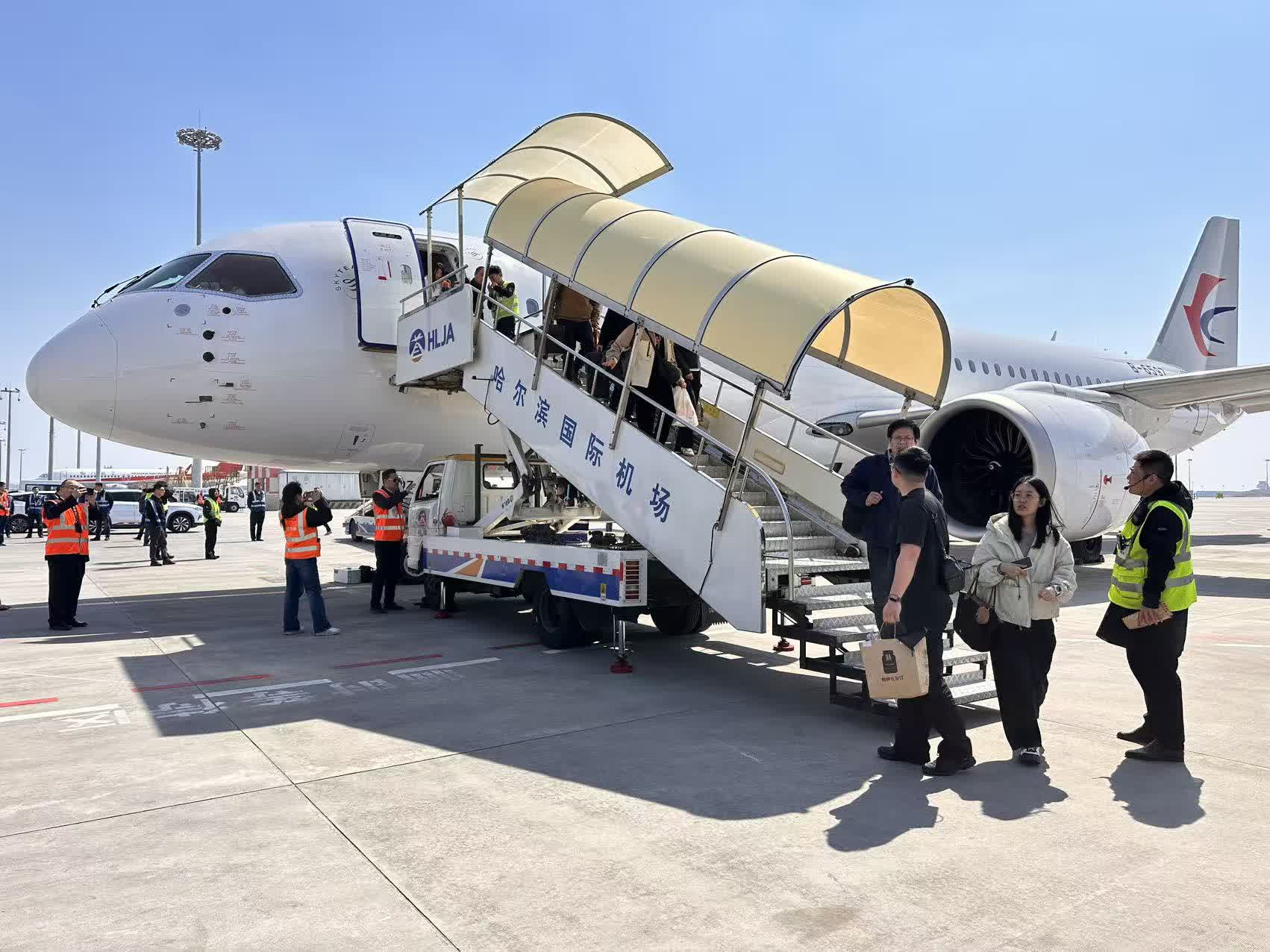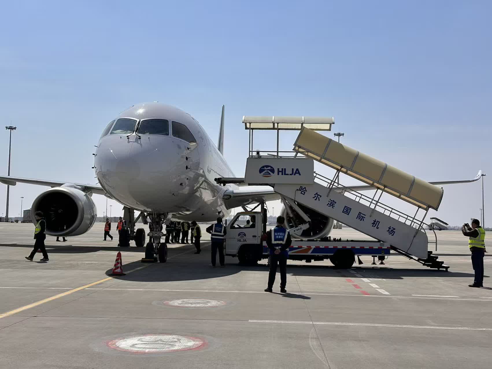 哈爾濱機場高度重視此次C919首飛上海的保障任務,前期精心籌備,提前制定保障方案,開通專屬值機櫃枱、安檢通道,從機位安排、行李裝卸到旅客引導,每個環節都井然有序。即日起,這條連接南北的空中走廊,將因國產大飛機的加入而更具活力,為黑龍江省航空產業與區域經濟發展注入新動能。
