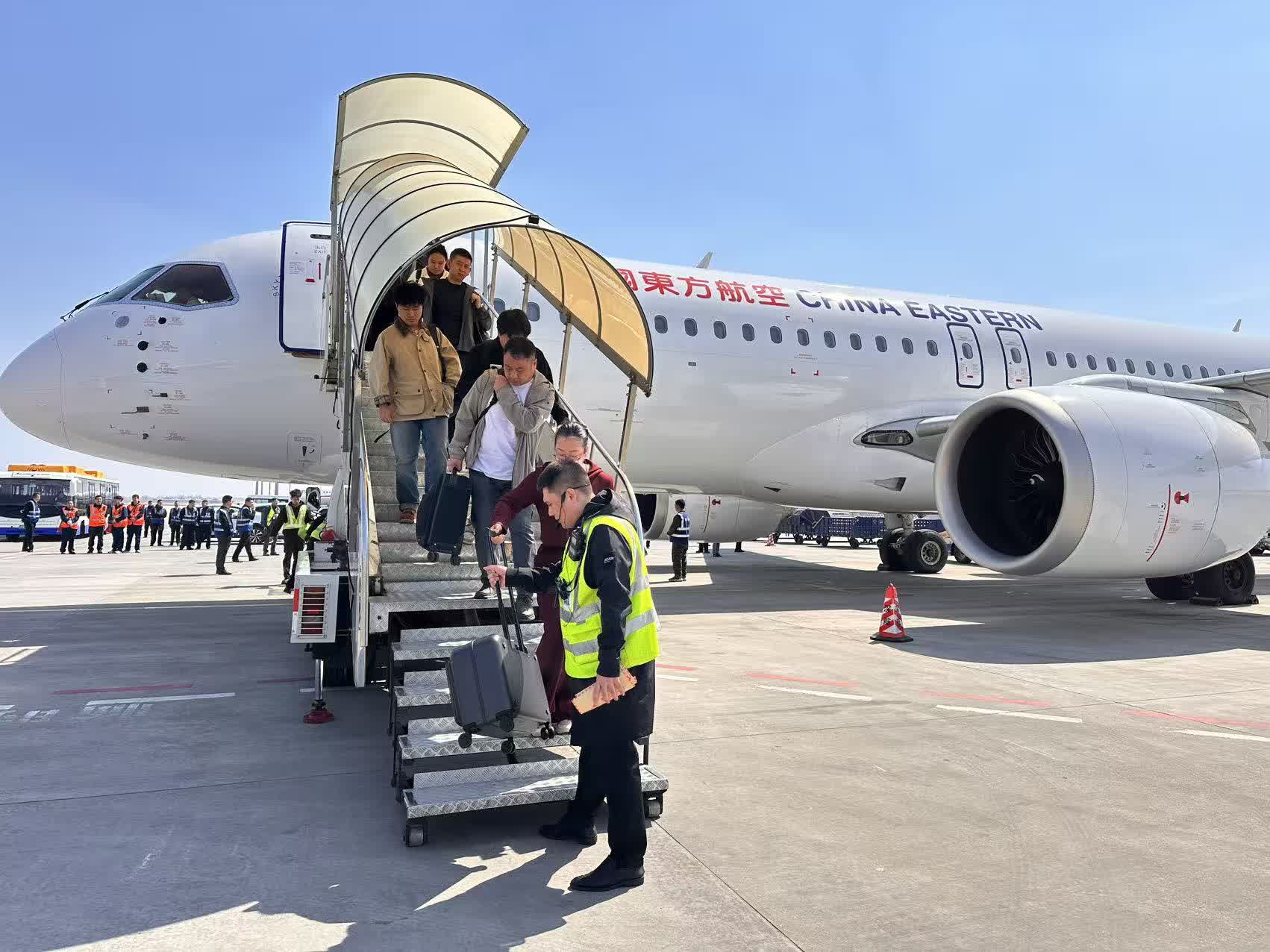 (記者王欣欣 文/圖 報道)4月15日11時56分,搭載140名旅客的MU5631航班平穩降落在哈爾濱機場,東方航空C919國產大飛機哈爾濱-上海航線成功首航,標誌着國產大飛機正式投入東北至長三角核心航線,「哈爾濱-上海空中快線」也迎來新成員。