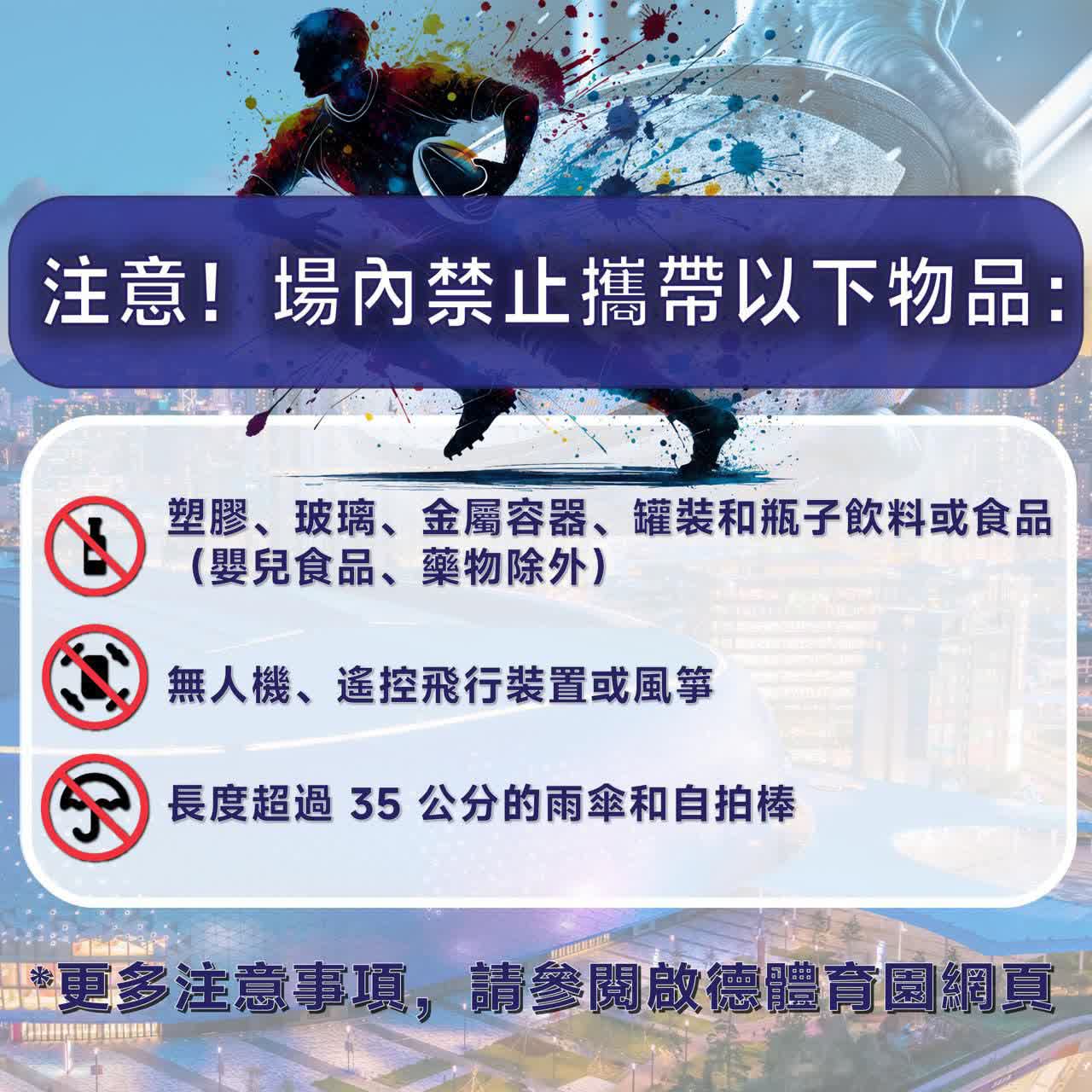「香港國際七人欖球賽」將於4月17至19日在啟德主場館舉行!為確保活動順利進行,警方提醒觀眾注意: