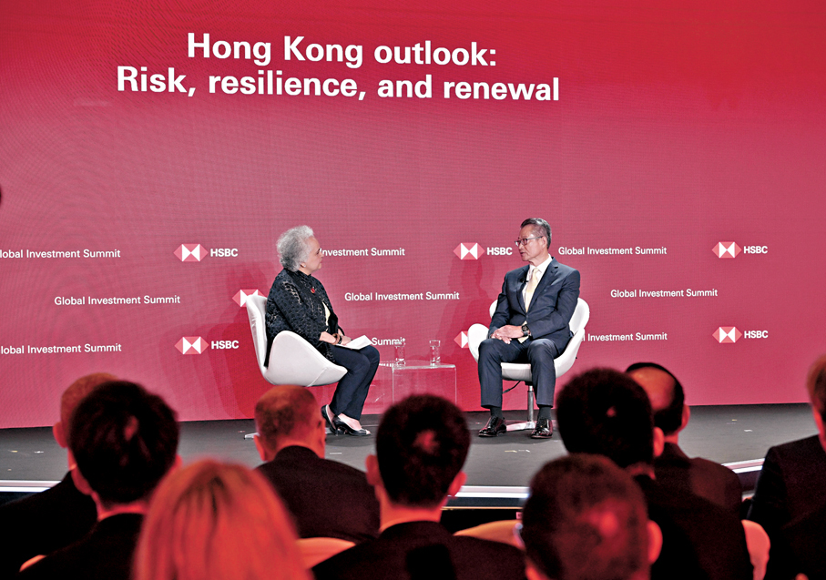 滙豐全球投資峰會昨日進入第二日,陳茂波在峰會的「香港展望:風險、韌性與復甦」訪談環節中表示,有信心香港在10至15年後,能躍升至全球第二大國際金融中心。香港文匯報記者翻查資料,根據今年3月份公布的《全球金融中心指數》報告,香港在全球金融中心排名中繼續排第三,香港的總得分為765分,較排第二的倫敦僅少1分,與排首位的紐約亦只差距2分。而且,香港的競爭力領域排名細項上,在「人力資本」、「聲譽與綜合發展」均領先倫敦,在「營商環境」、「金融業發展」上也緊隨倫敦其後。