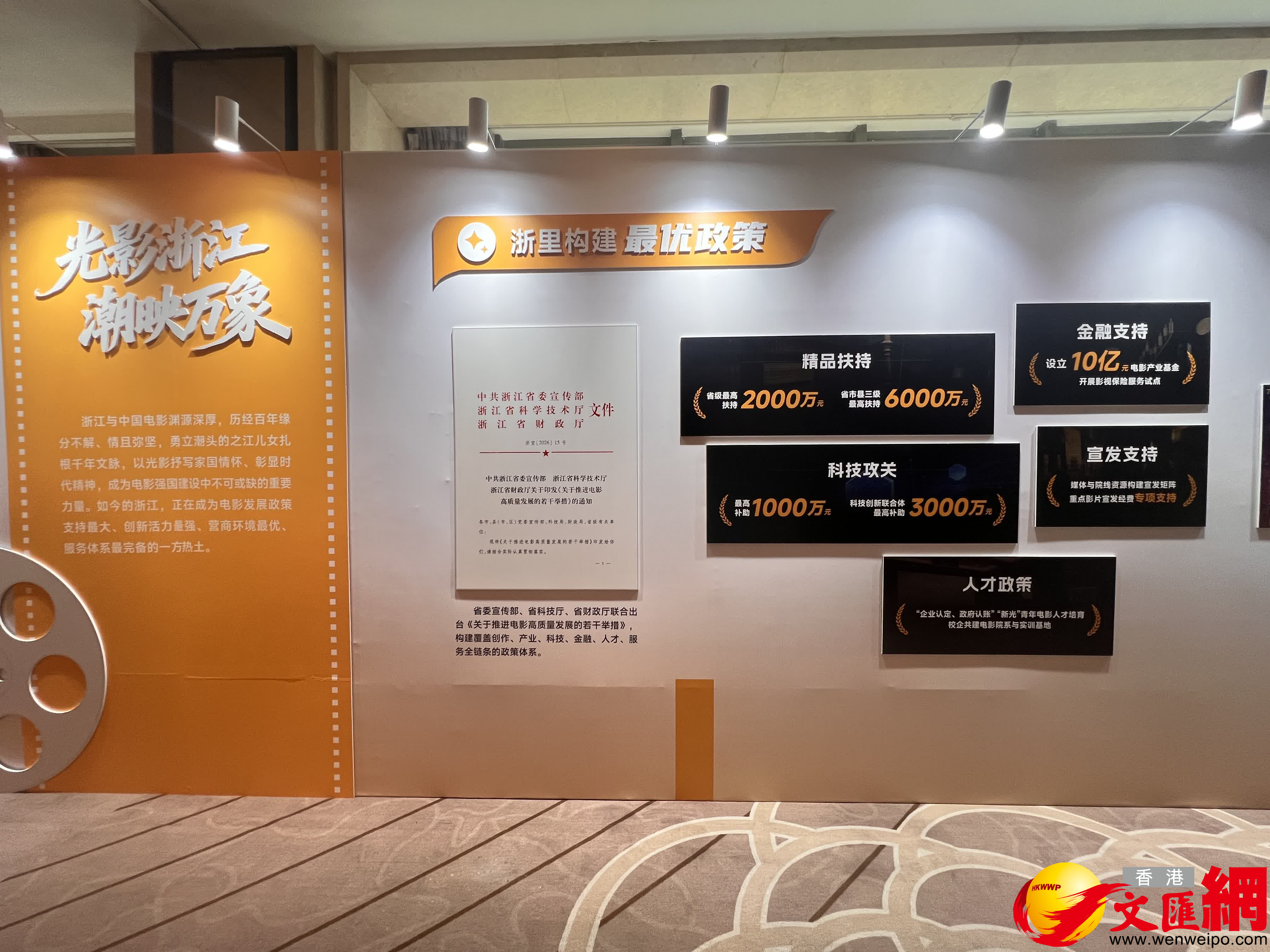 浙江省委宣傳部電影處處長蔣餘鷹介紹,浙江省委宣傳部、省科技廳、省財政廳將聯合出台《關於推進電影高質量發展的若干舉措》,合力構建覆蓋創作、產業、科技、金融、人才、服務全鏈條的政策體系。其中對於精品扶持省市縣三級最高扶持獎勵可達6000萬元(人民幣,下同);在科技攻關上,將給予最高1000萬元補助,科技創新聯合體最高補助3000萬元。他表示,通過聚焦內容牽引+平台支撐+政策賦能+科技驅動工作體系,促使浙江電影精品能夠不斷湧現。
