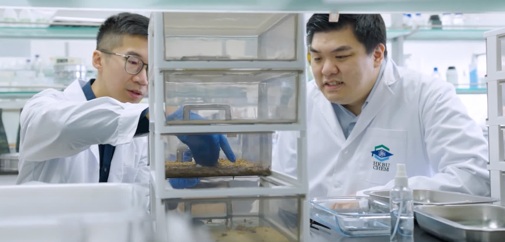 據了解,黃粉蟲俗稱「麵包蟲」,常見於寵物飼料市場;但鮮有人知道,它的腸道內存在能夠分解塑料的細菌。然而,單純用塑料餵養黃粉蟲的降解效率很低。面對這一問題,由香港浸會大學化學系助理教授呂育儒博士和北師香港浸會大學生命科學系助理教授梁志文博士牽頭、兩校學生共同參與的科研團隊,展開了一系列創新攻關研究。