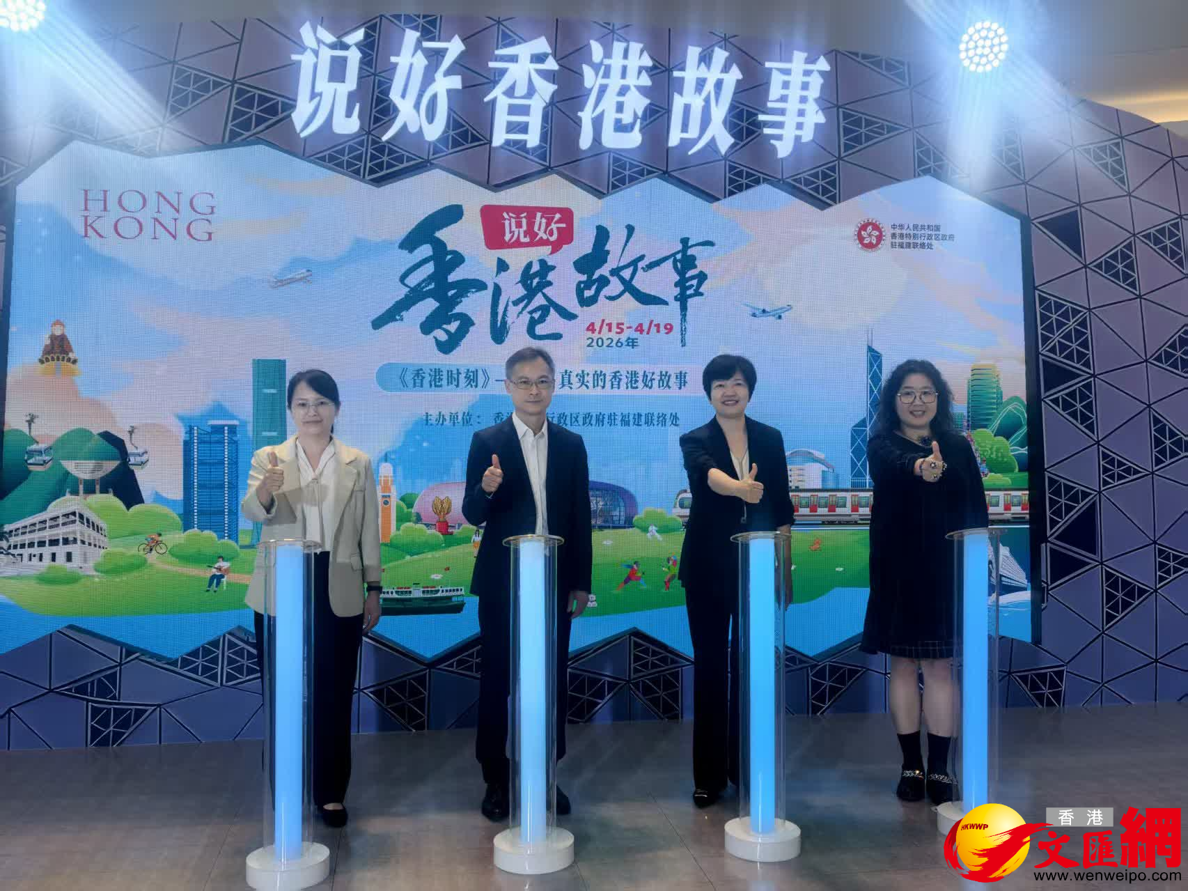 (香港文匯網記者蘇榕蓉)由香港特區政府駐福建聯絡處(駐福建聯絡處)主辦的「說好香港故事」展覽4月15日在福州市世歐廣場舉行。該展覽以航空為設計主題,着力推廣香港在「一國兩制」下「背靠祖國、聯通世界」的全方位優勢,並展示香港協助內地企業「出海」、拓展國際市場、「留學香港」等品牌。展覽亦介紹香港的多元文化及文旅資源,以及香港建設北部都會區的構想藍圖等。展期為期5天,以打卡及AI互動裝置讓參觀人士沉浸式體驗香港的魅力。
