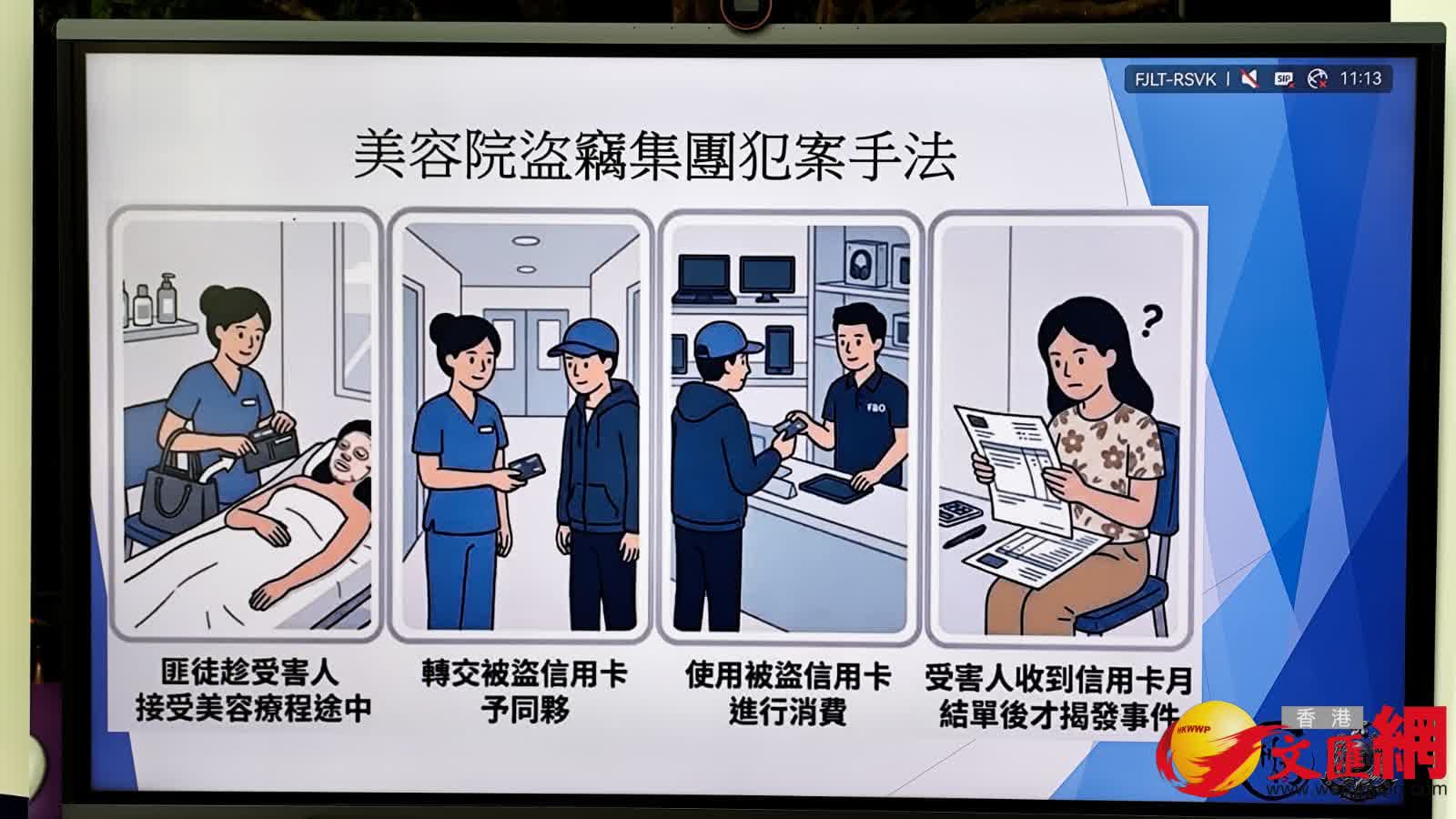 新界南總區刑事部李木易警司今日(16日)表示,該個盜竊團伙成員分工明確、各司其職,作案過程「一氣呵成」,務求在最短的時間內,以及在受害人發現信用卡被盜前獲取利益。由於疑犯每次都只是偷取受害人錢包內的信用卡並將錢包放回原位,此舉避免受害人很快發現信用卡被盜,而事實上有受害人在收到銀行月結單時才察覺信用卡被盜。